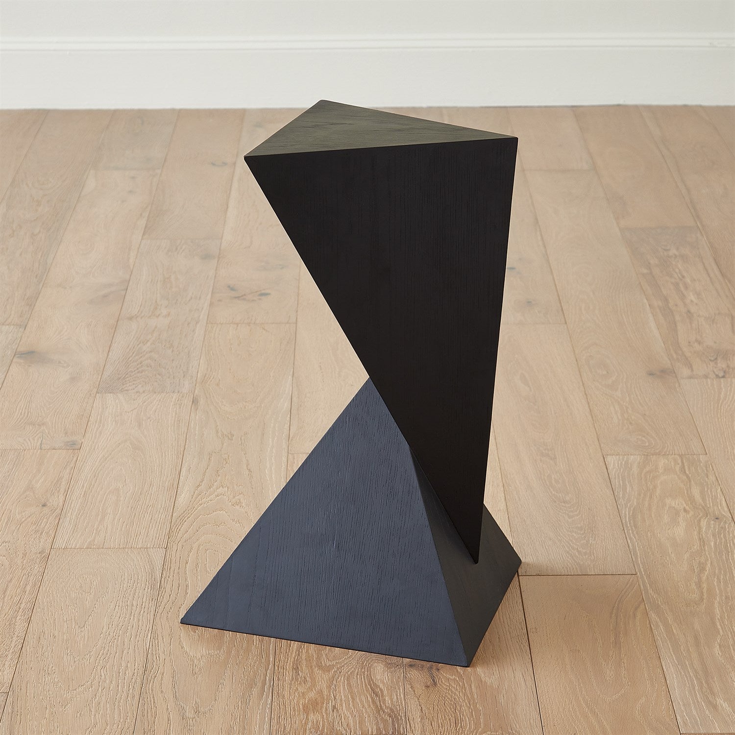 The Spectrum Side Table features an intriguing abstract design in oak veneer with a blackened or natural oak finish. This modern piece provides a stylish touch to any living space or bedroom.