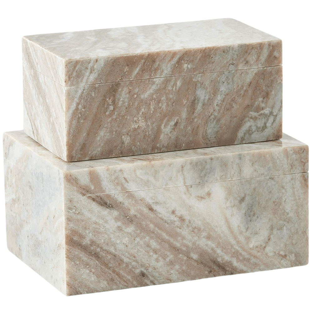 Toronto Marble Boxes feature sleek, modern lines crafted from premium Toronto marble with distinctive veining. These boxes offer sophistication while providing a stylish way to store and organize small items. As marble is a natural material, veining and color variations are expected. These unique characteristics ensure that each piece is one-of-a-kind.