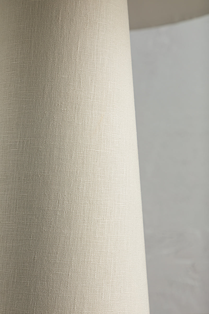 Chanterelle's pleated natural linen shade feels soft and fresh and the undulating edge adds sophistication and movement. The tapered base is also wrapped in natural linen, creating an allover linen materiality and clean monochromatic palette that makes this modern organic table lamp feel right on trend.