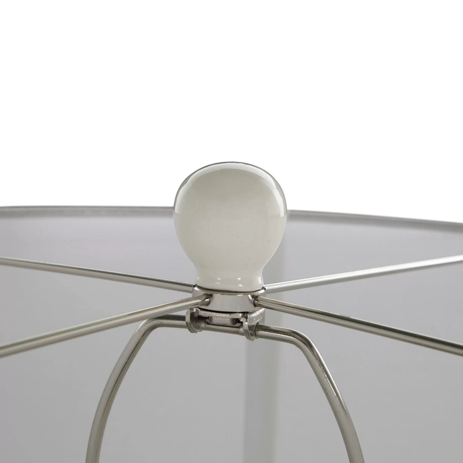 The Liora Table Lamp - Blue boasts a hand-painted ceramic crosshatch pattern in a timeless navy blue and white color scheme Each brush stroke is thoughtfully placed making no two exactly the same Featuring a neutral brushed nickel metal harp white linen shade and white ceramic finial this piece will blend well in any style room