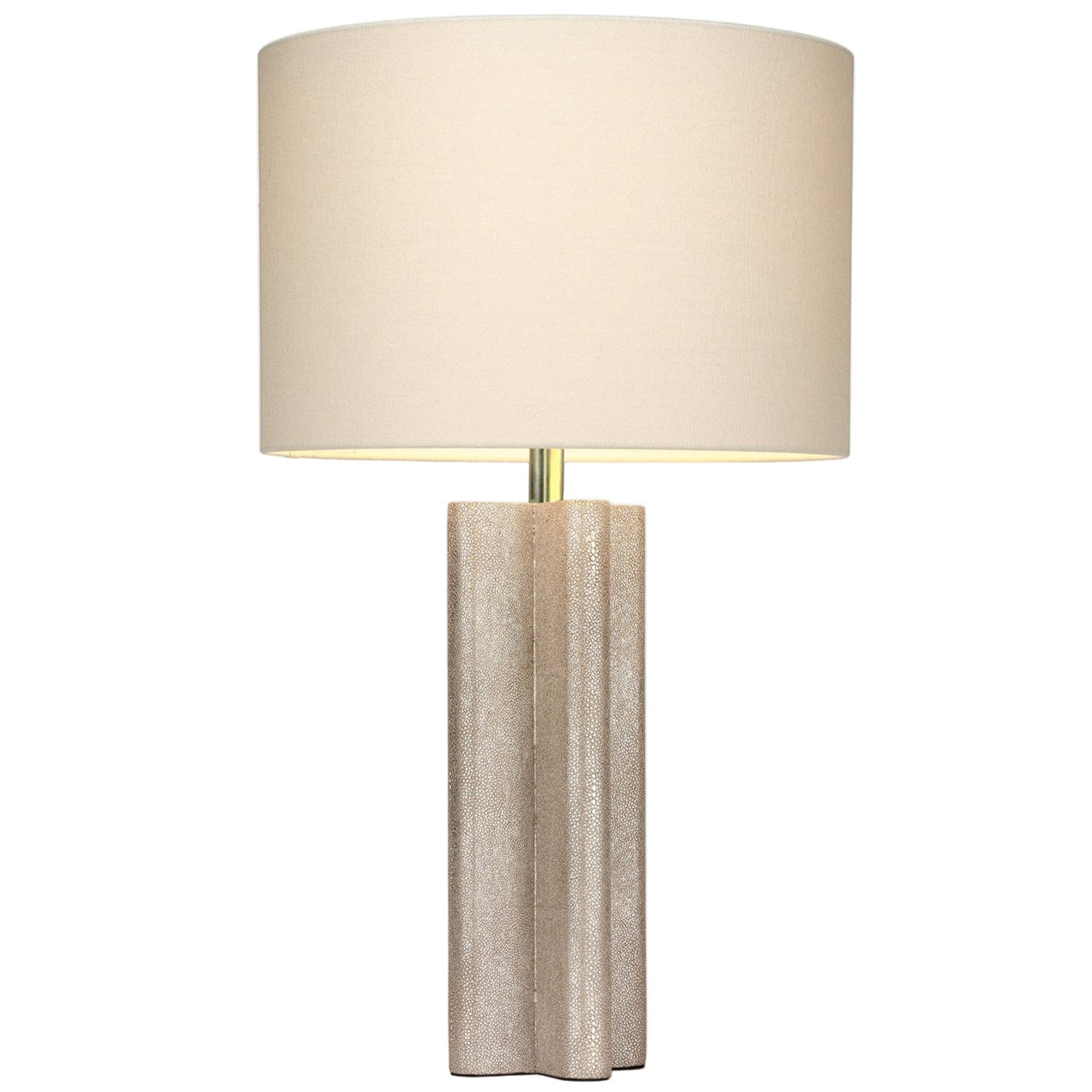 The X-shaped design of the Norwood lamp is only one of its many striking features. Its decadent faux shagreen finish and sleek shade design deliver a polished aesthetic with practicality front and center.