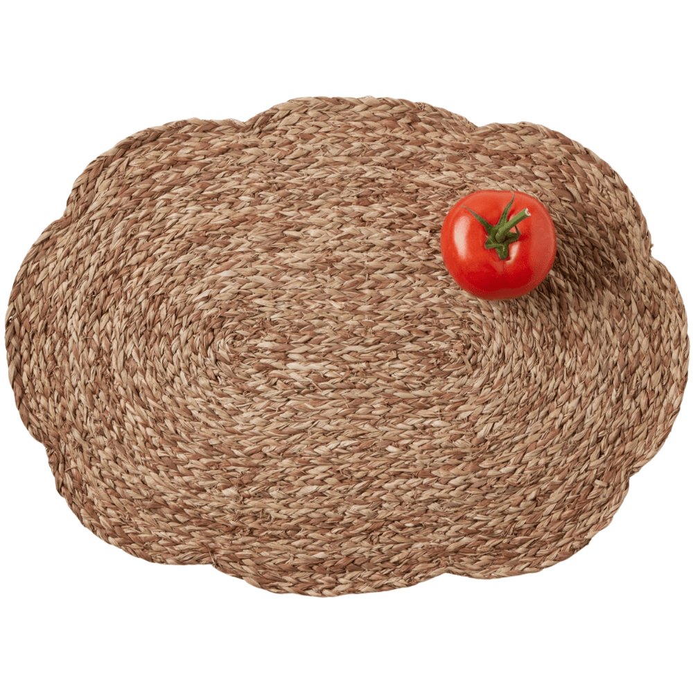 Our Vera placemats usher in dining with their scalloped floral design. Natural woven bleached raffia is casually chic; mixed blue and mixed gray finishes create a more colorful setting. Fun, sustainable, and great for al fresco dining. Now available in oval!