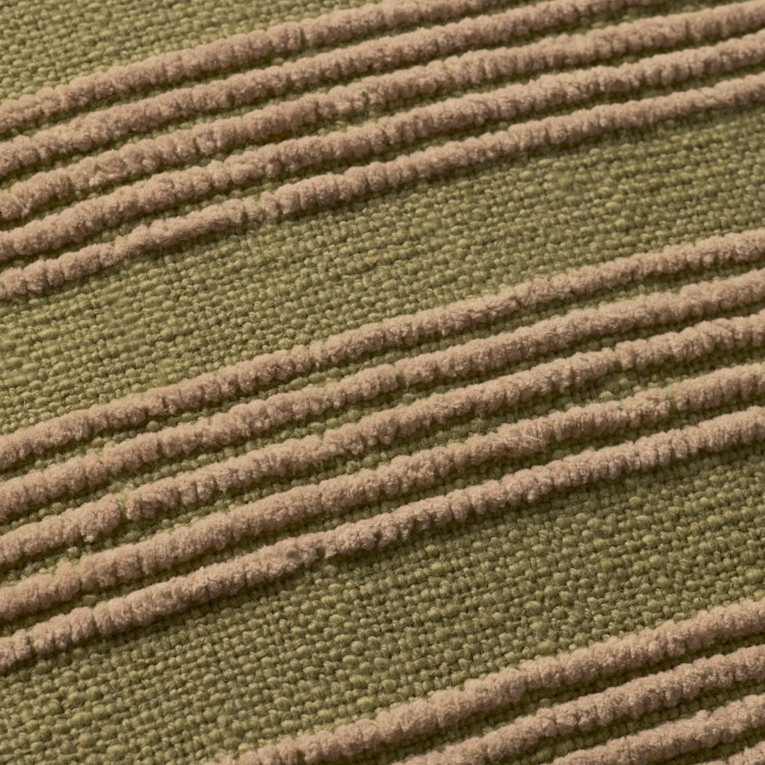 Aspyn is a throw pillow from Amber Lewis x Loloi with nicely textured, tan stripes. The pillow cover is hand-woven of cotton and polyester in India, a versatile design for living rooms and bedrooms of all home decor styles, from traditional to organic modern.