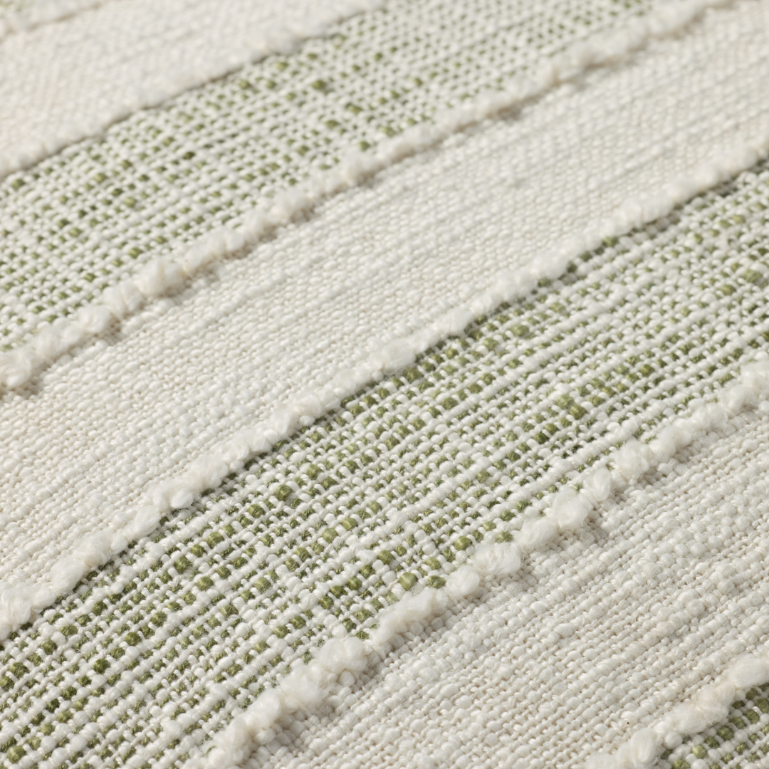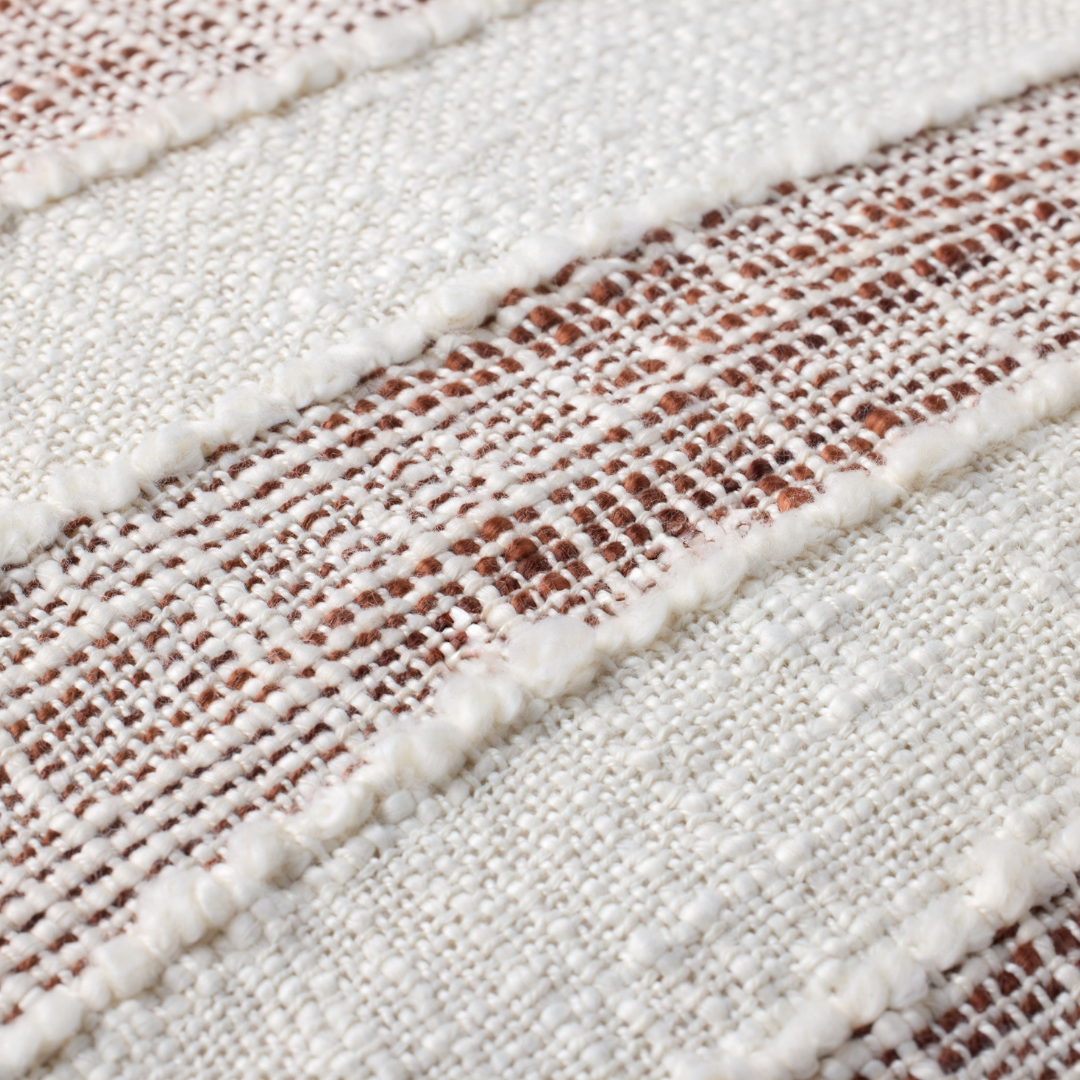 This woven throw pillow features stripes with fringed edges and raised stitch detailing. The pillow cover is made of cotton and polyester and measures a standard size to style in living rooms and bedrooms.
