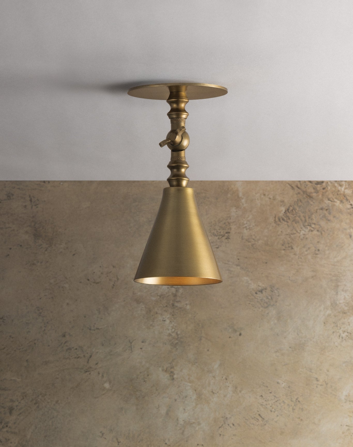 Simple and refined, this flush mount brings a warm, understated glow to any room. Finished in Patina Brass, it offers a timeless look that blends effortlessly into both classic and modern spaces. Its compact silhouette makes it a versatile choice for areas like hallways, kitchens, or bedrooms, offering a clean, elegant alternative to standard overhead lighting.