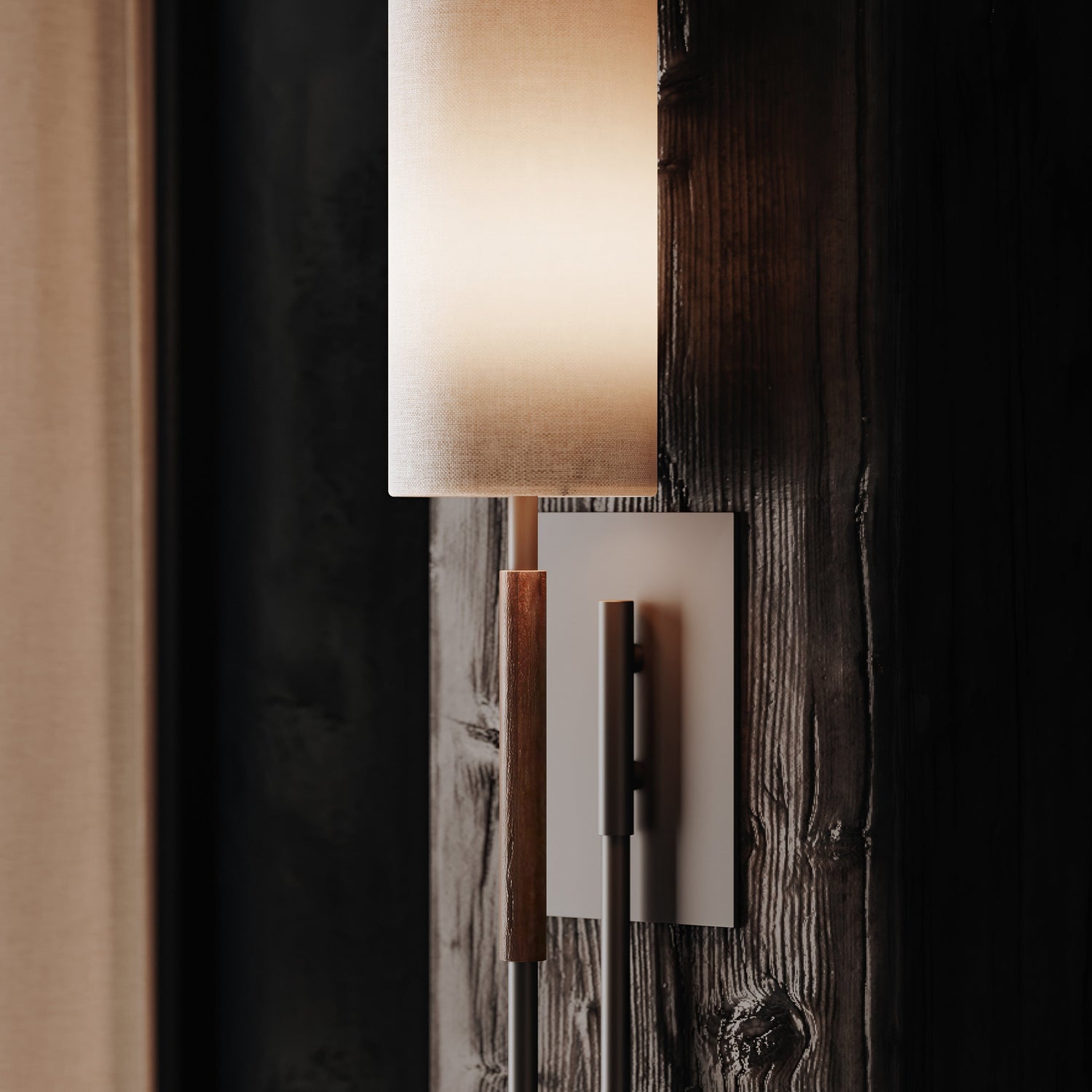 A piece of acacia wood thoughtfully positioned in the middle of the soft black metalwork gives Cosmo a modern, cosmopolitan vibe. A white linen shade that emits a soft glow adds to the warm and inviting feel of this natural beauty.