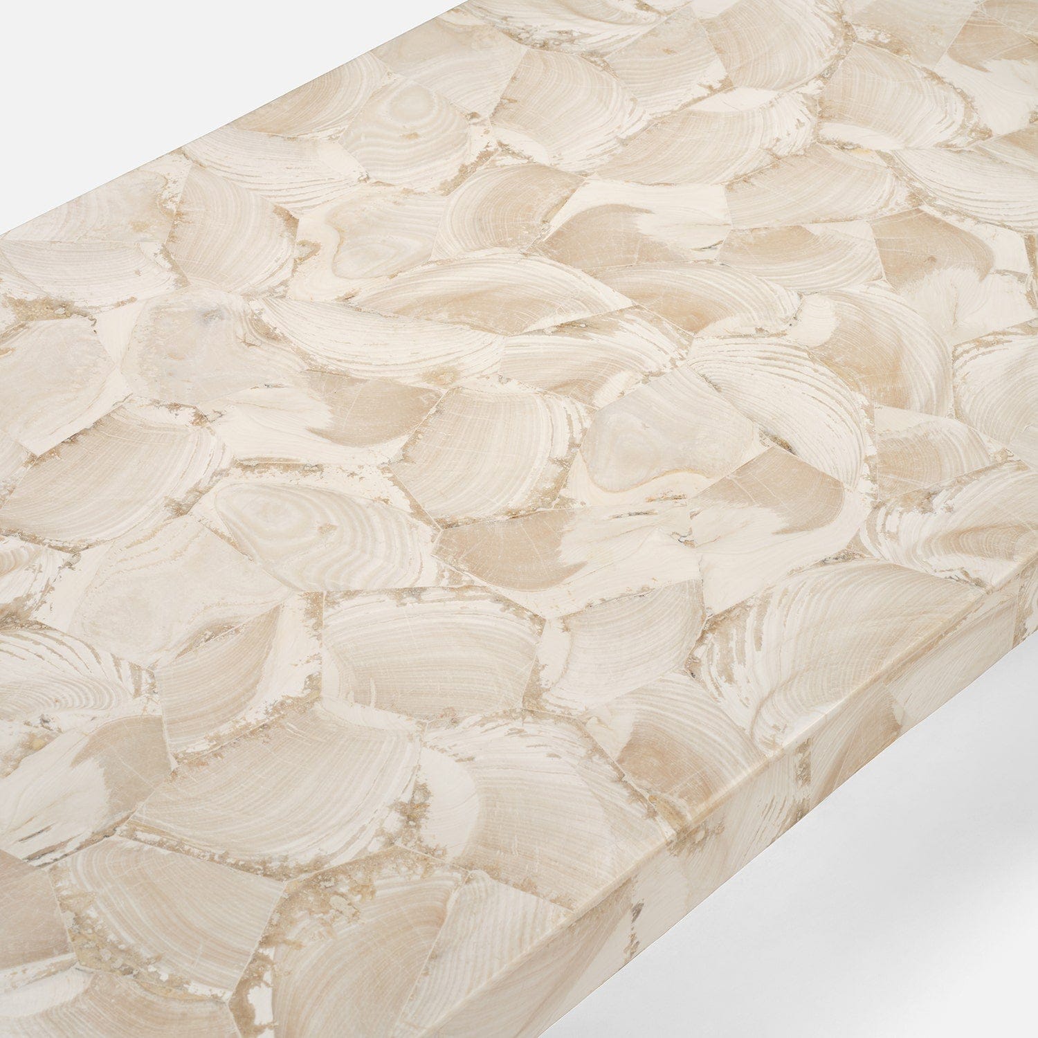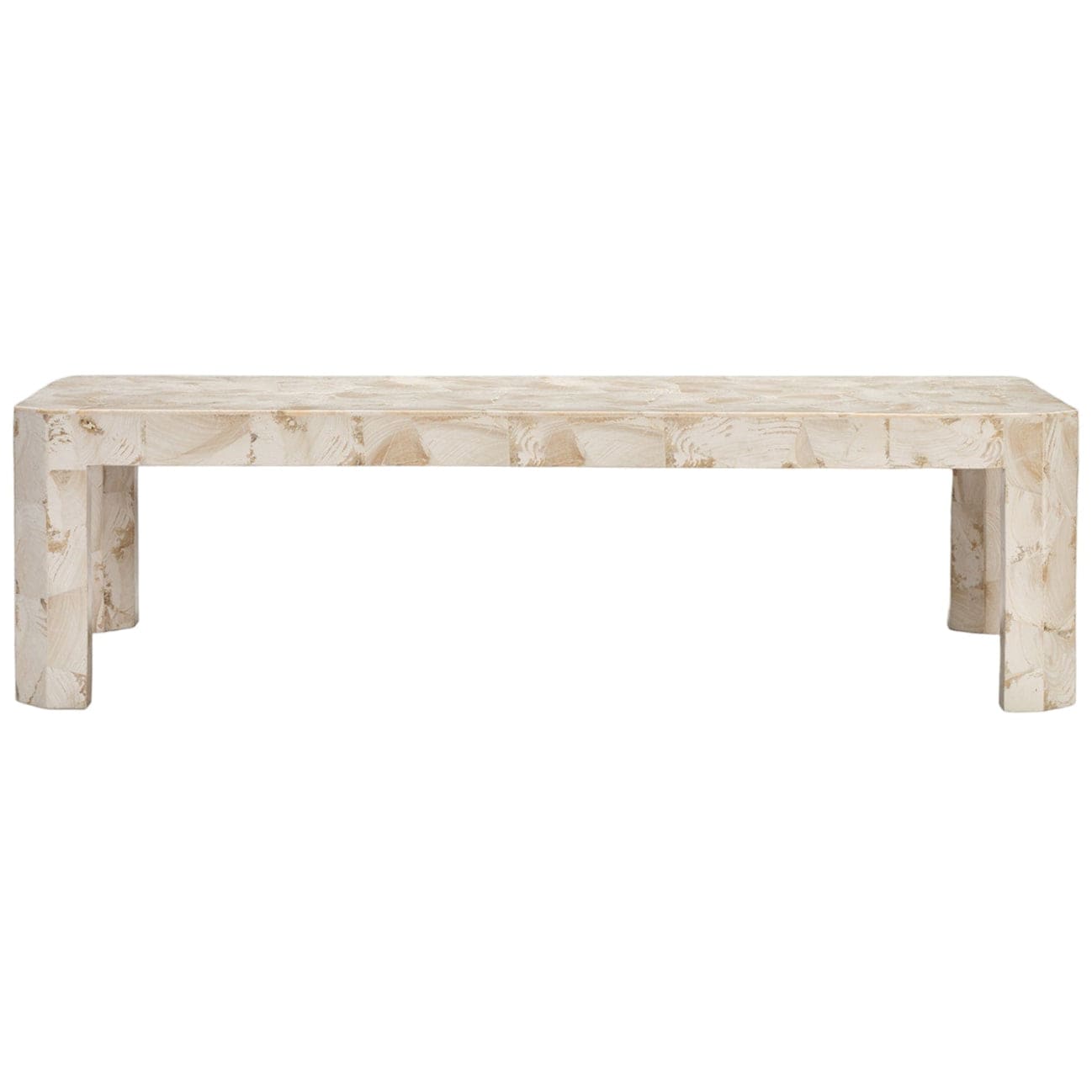 Cool tones of fossilized stone combine with a daring, patchwork design to create the Bergen coffee table. Crafted with subtle, geometric-inspired corners, it exudes luxury from all sides.