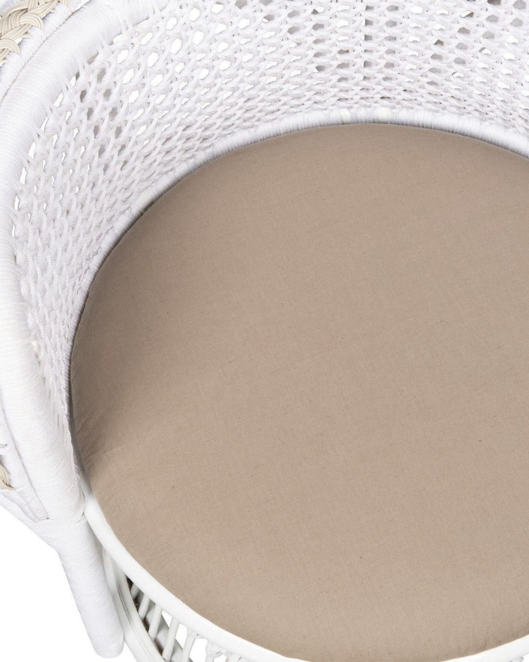 Its high, arched back and swirling arm supports draw inspiration from traditional throne silhouettes, offering a sense of elegance and presence while still maintaining a relaxed, organic feel. A plush cushioned seat provides everyday comfort, making this piece as functional as it is distinctive.