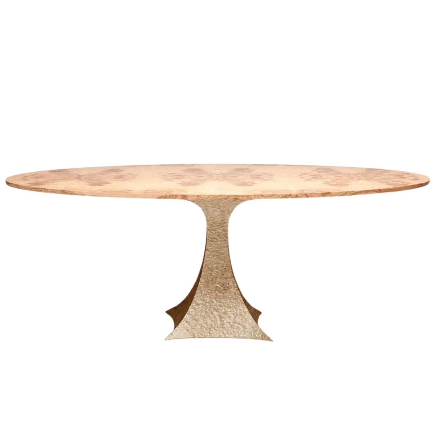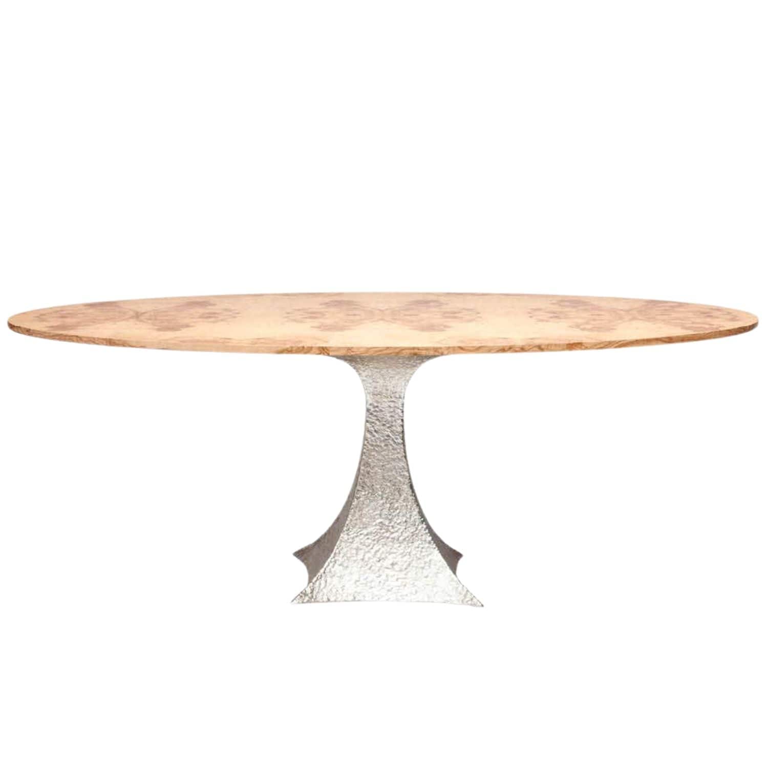 Our Noor table base is defined by elegance and ease. The hand-hammered, tapered aluminum features a pyramid-like shape that adds an airy feel. It is compatible with any of our rectangular, round or oval tabletops.