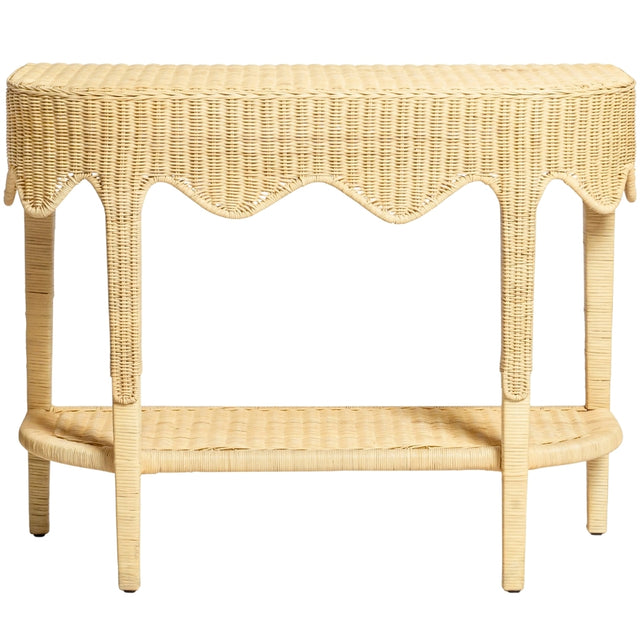 The Marley Natural Rattan Console Table is one of those pieces that instantly makes a space feel more finished. Hand-woven on site using naturally harvested rattan, it shows off the texture and variation that make natural materials feel special. The scalloped design adds a fresh, trend-forward touch, while the fixed wooden frame gives the table strength and stability. It works beautifully in entryways, living rooms, or behind a sofa without feeling overstyled.
