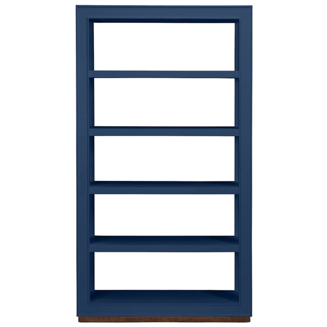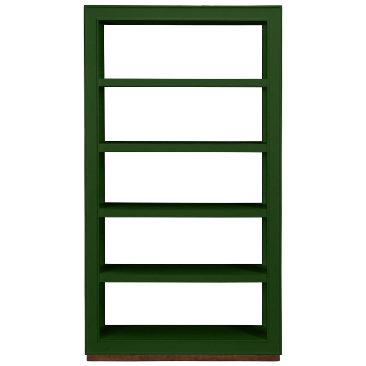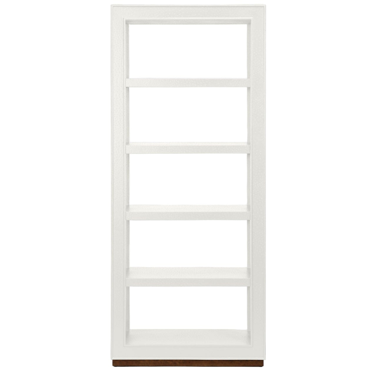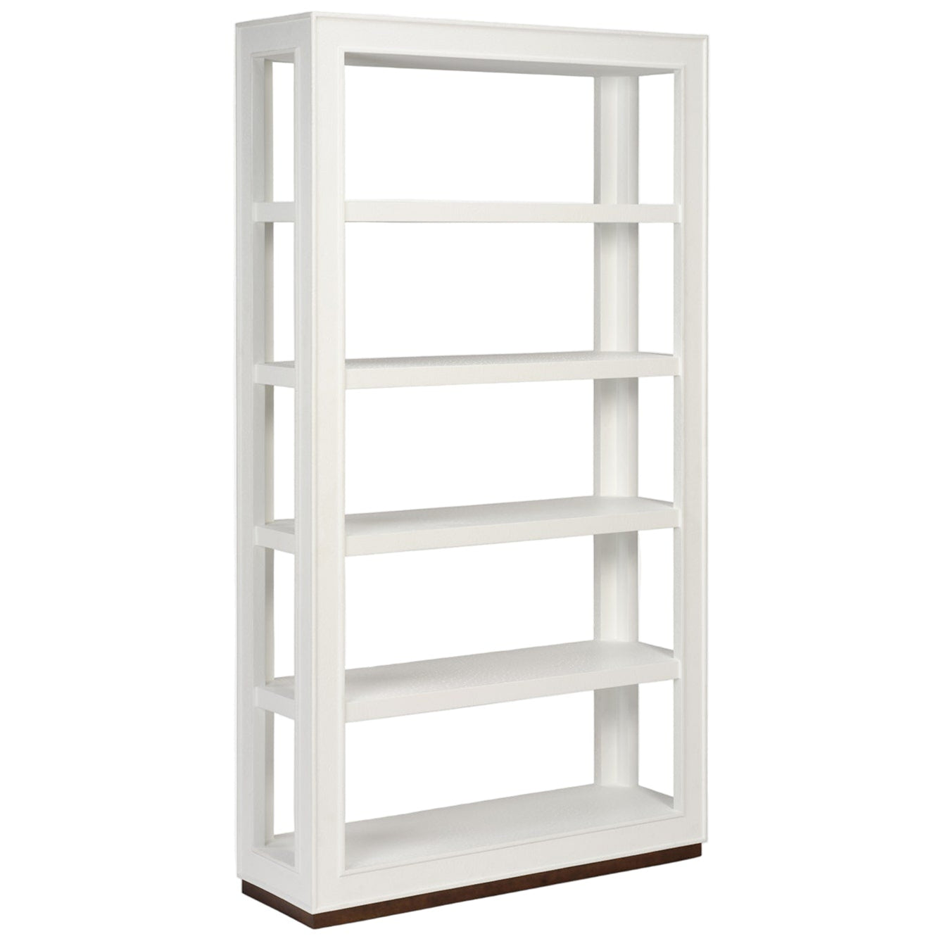 The rich texture of faux ostrich elevates the clean lines of this bookcase. The crisp geometry of its architecture is emphasized by a frame edged in slender molding and the addition of a shelf.