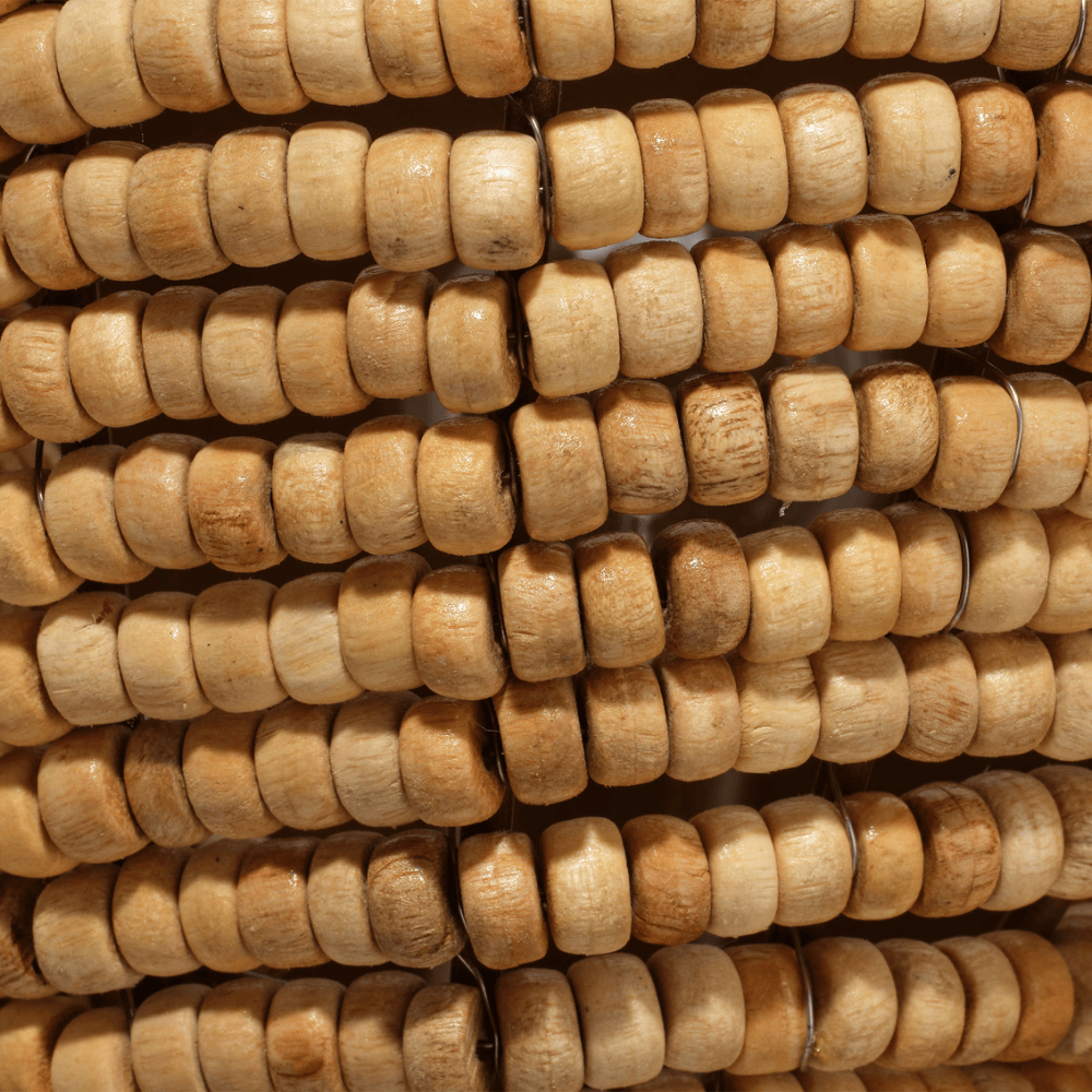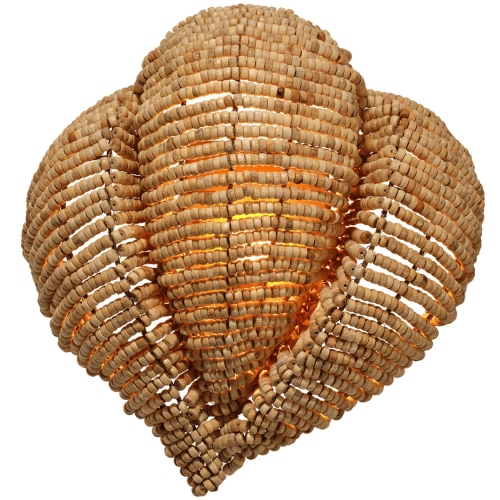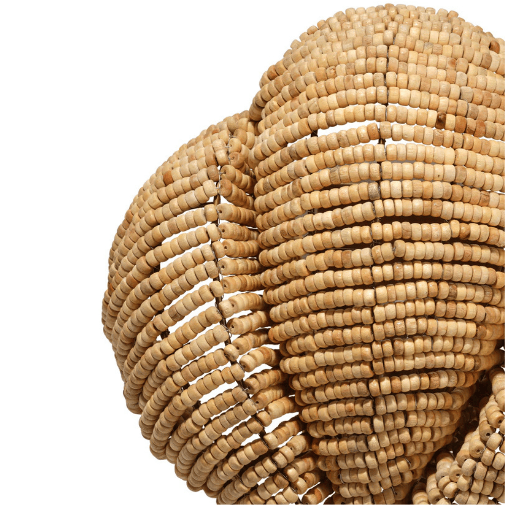 Overflowing with charm, these delightful wall sconces will enliven any room when hung individually, in multiples down a hallway, or mixed into a gallery wall. Each is beautifully crafted of small mango-wood beads strung on strong metal wire. Every bead is as unique as the natural wood material, and these variances in shading, size, and finish create mesmerizing one-of-a-kind patterns, ensuring that no two are identical.