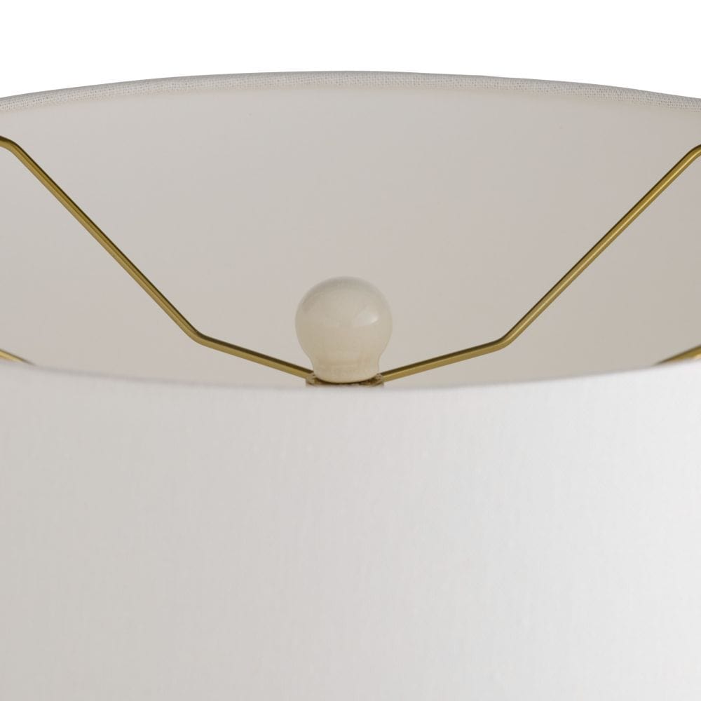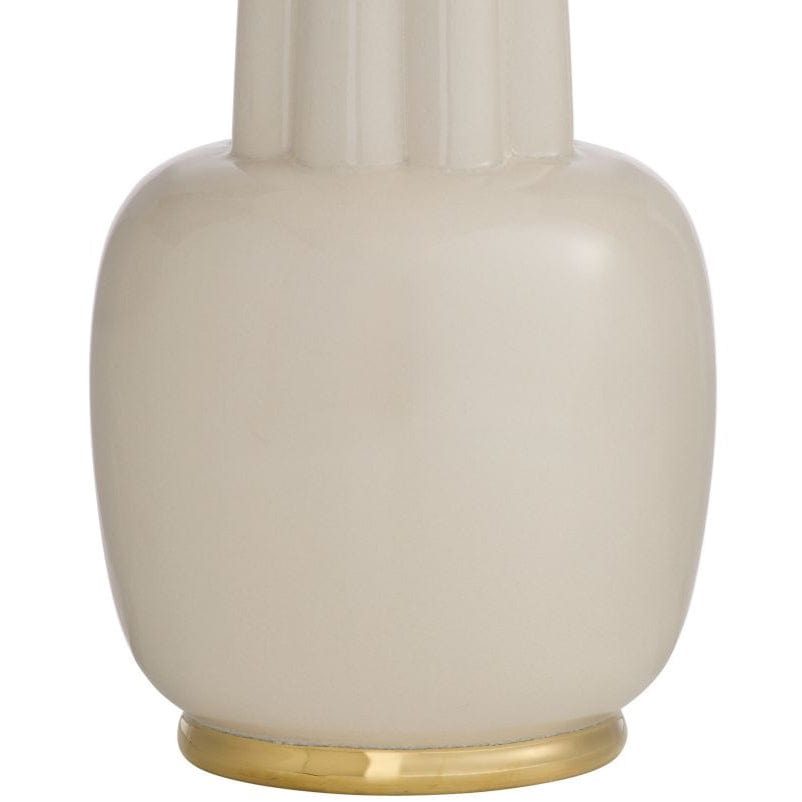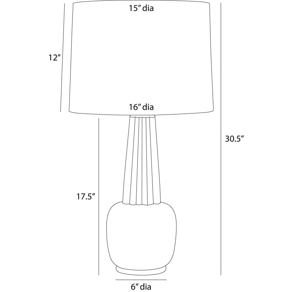 The traditional shape of this porcelain lamp features an elongated ribbed neck that towers above a rounded base. The finish pools subtly where the neck and base connect, creating an eye-catching detail that accentuates its graceful frame. Set on a sleek platform for a polished appeal, this piece is a quintessential luminescent for traditional spaces. Topped with a linen drum shade with cotton lining and a matching porcelain finial. Finish may vary.