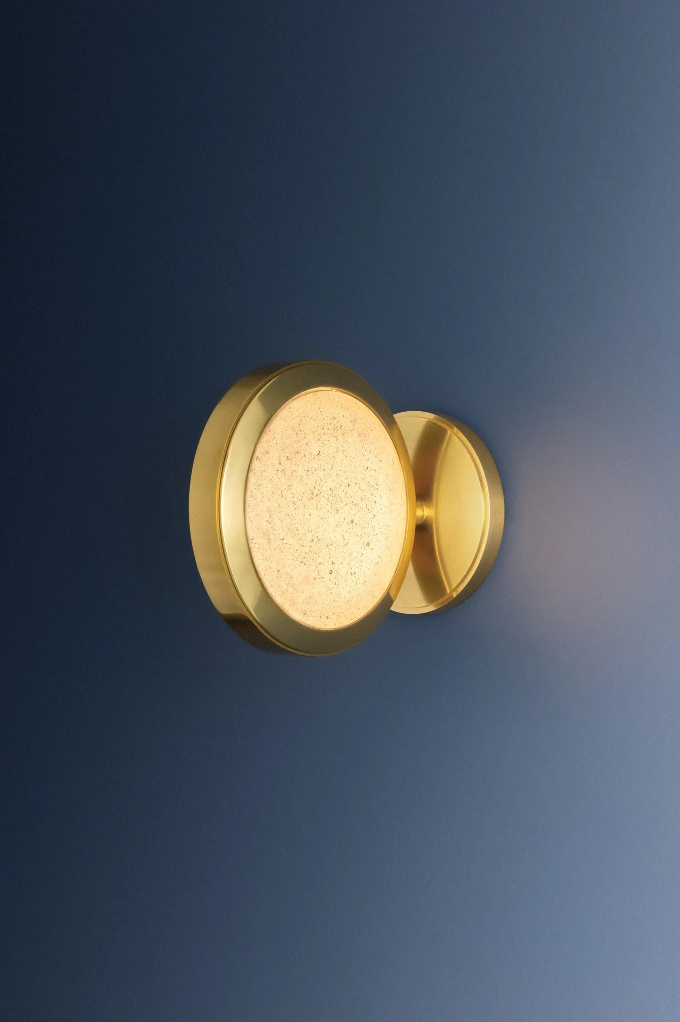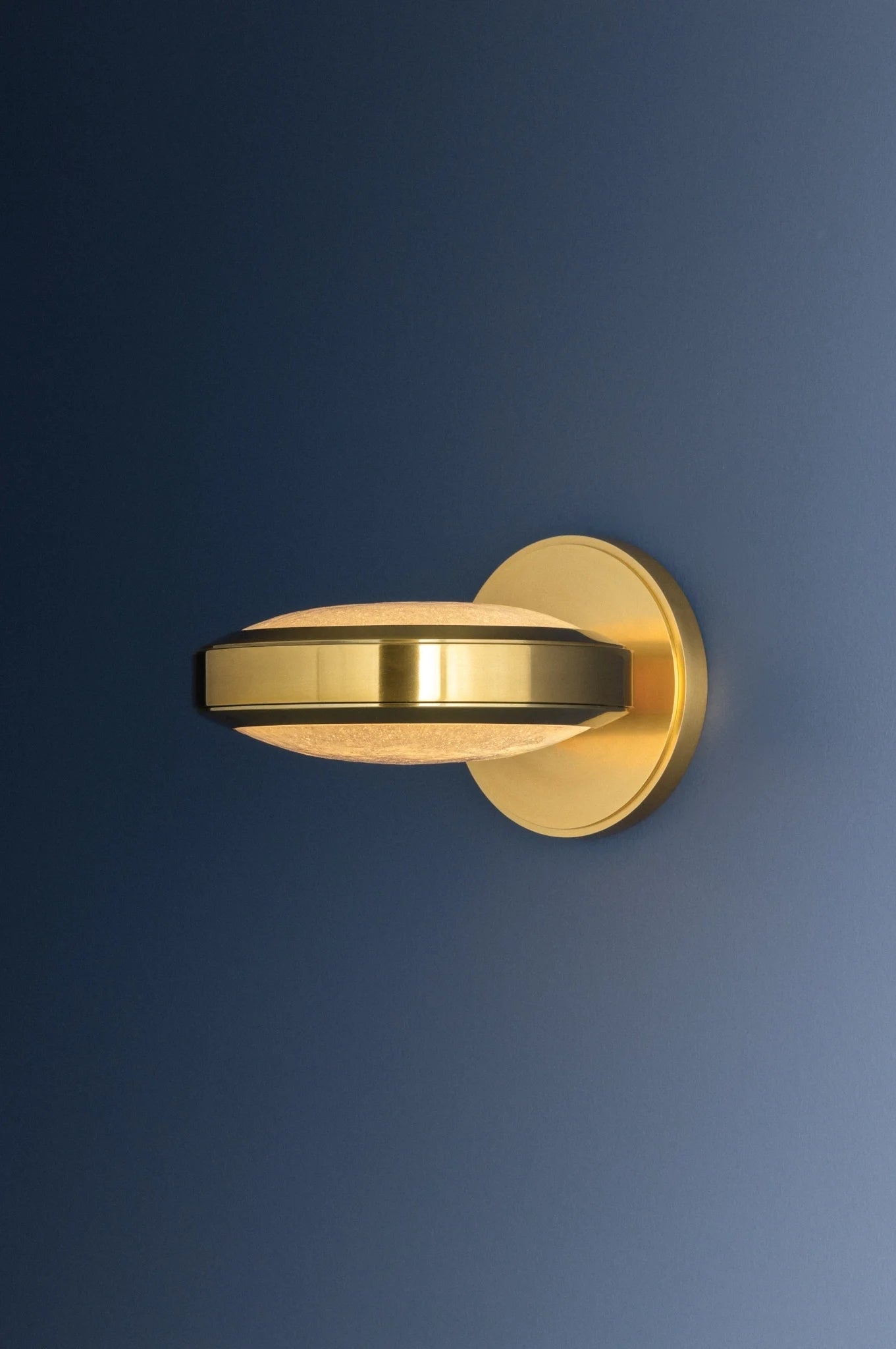 The Harris sconce is a petite yet powerful everyday staple. Finished in Aged Brass, the metal frame swivels at the backplate to allow you to direct light precisely where it’s needed. The artful Sprite glass shade brings a natural texture to the clean, minimalist form, balancing the smooth metalwork with the energetic character of bubbled glass.