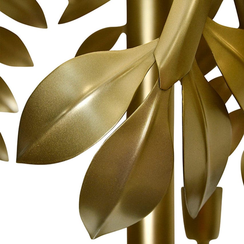 Five-light palm tree chandelier in antique brass finish.
