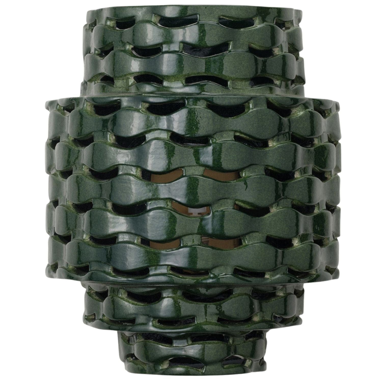 Add a hint of dimension to your latest design with striking shadows from the glow of the Omiros, an earthenware sconce with small crescent cutouts and an abstract silhouette. Designed for dry indoor spaces only.