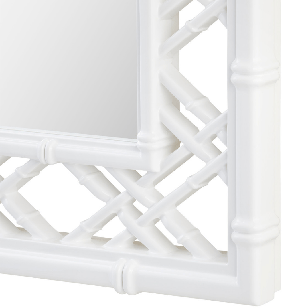 The Clara Mirror channels timeless charm with a nod to traditional glamour. Its rectangular silhouette is framed by a latticed bamboo design, evoking classic Chippendale chinoiserie. Crafted with care and rich in detail, it brings texture, structure, and a sense of heritage to the wall. Instantly recognizable and effortlessly stylish, the Clara is destined to become a lasting favorite.