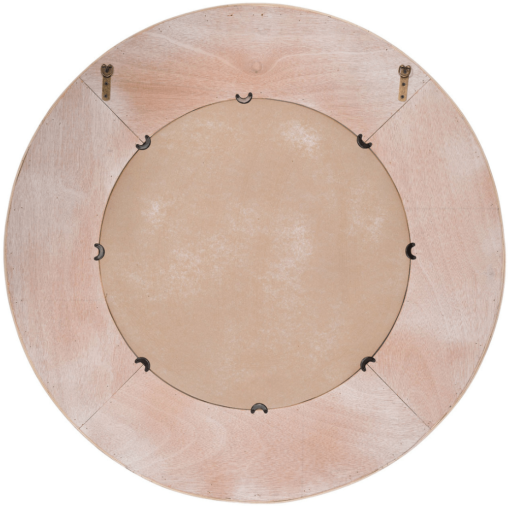 The simple circular lines of this wood mirror are beautifully enhanced by linear textural elements. Artisan-crafted from bamboo, its monochromatic finish makes it an easy addition to any wall display. Place it by the door for a quick fit check on your way out, or in an entryway for a welcoming touch of light.