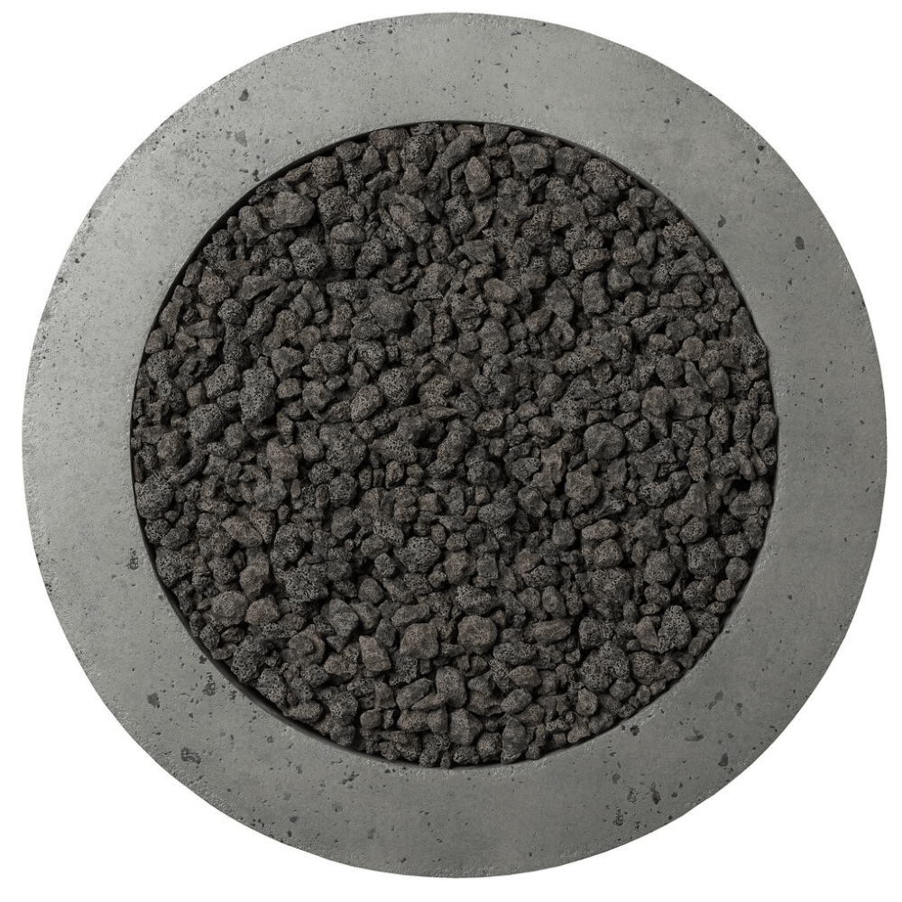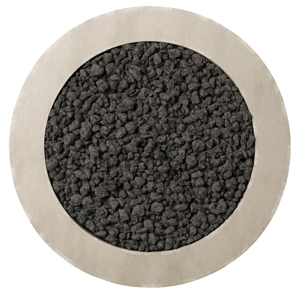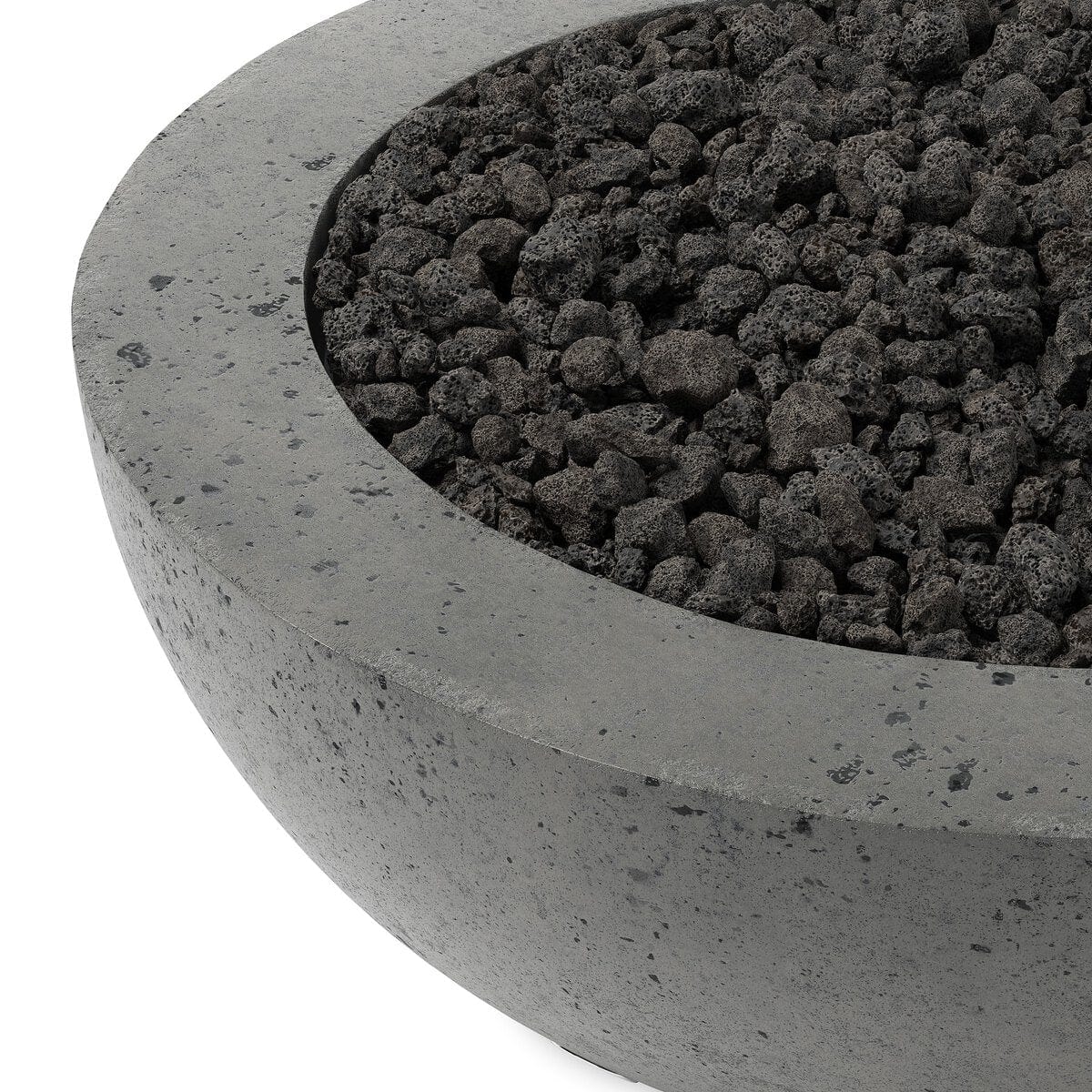 This outdoor fire table is a welcoming centerpiece designed for gathering. Made from glass-reinforced concrete, each piece is naturally finished with subtle tones of grey and cream. The bowl shape is completed with lavastones in the center, bringing together a bold, monochromatic look. Propane tank enclosure sold separately; fire table ships with standard connection hose. Cover or store indoors during inclement weather and when not in use.