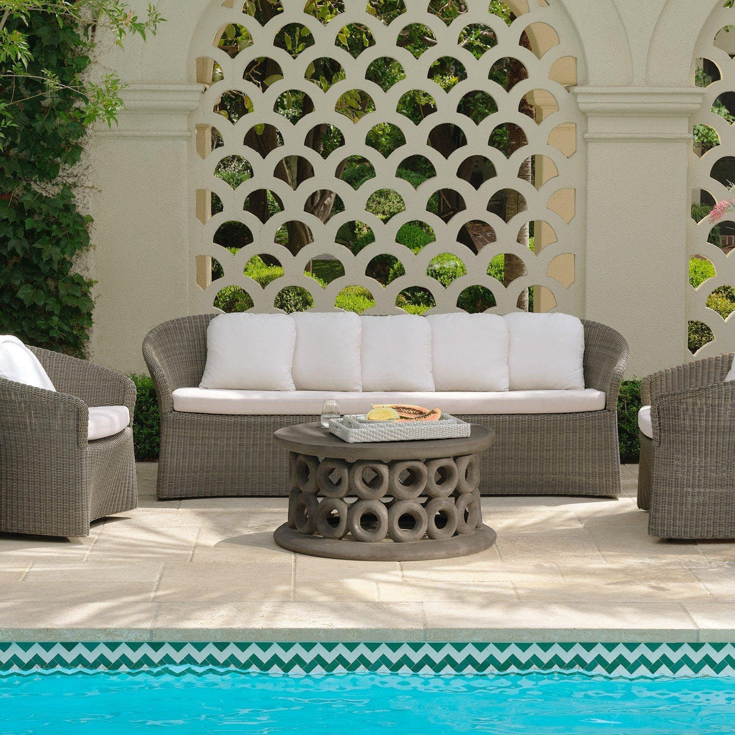 Our Deborah is made from weathered faux rattan with smooth and alluring curves. Cushion comes upholstered in our base fabric, Alsek White, or can be upholstered with one of our luxe upholstery fabrics.