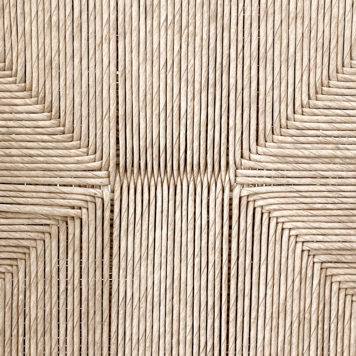 Shaker inspiration. Saddle brown wood frames the woven seat and back of this outdoor dining armchair. Cover or store indoors during inclement weather and when not in use.