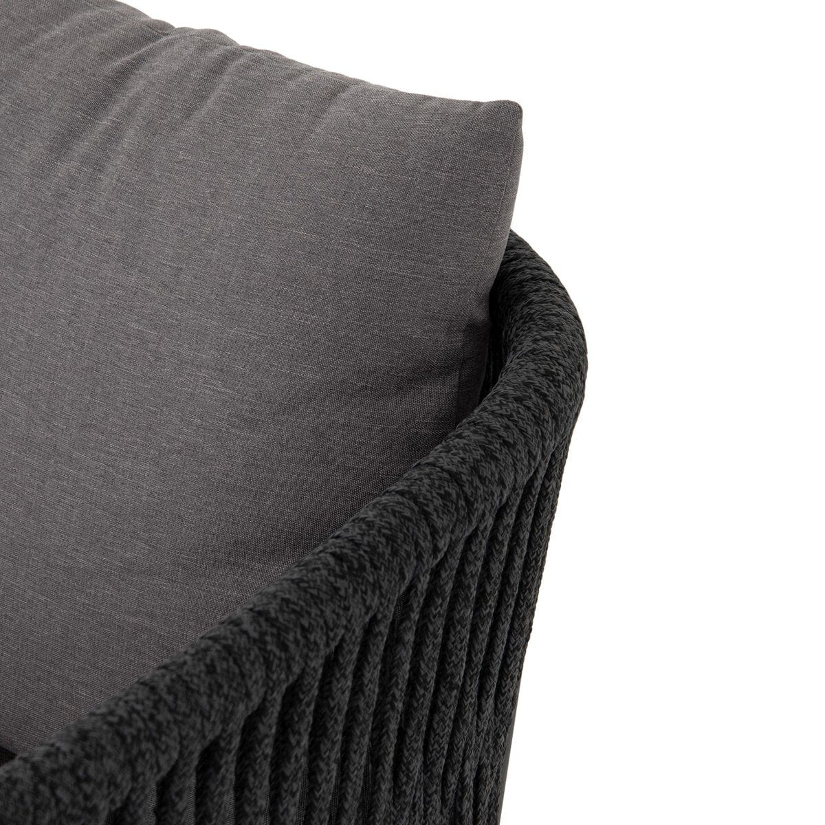 The perfect place for outdoor daydreaming. A beautiful rope-based design is woven across a durable aluminum frame. Topped with a wide cushion and throw pillows, all upholstered in 100% olefin, known for its UV-resistant, water-repellent and quick-drying abilities