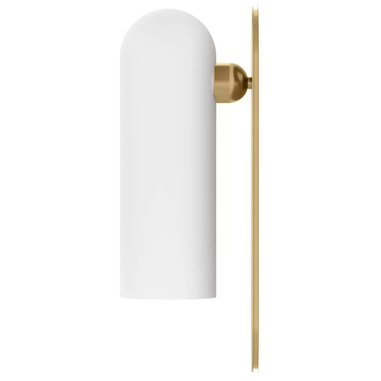 A single elongated glass cylinder balances and floats from a burnished brass frame. Matte glass is specially manufactured to evenly diffuse light. The finish on the brass frame is achieved through a specialized process that turns the brass into an almost black hue before the rod is polished smooth. Brass and glass are 98% recyclable. Designed and sustainably crafted in Poland by Schwung.