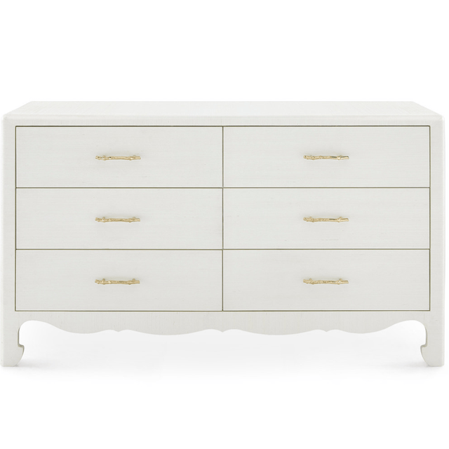 The Gianna Collection exudes feminine charm and delicate beauty. Each piece is meticulously wrapped in grasscloth and finished with a clear lacquer, highlighting the natural texture while providing a subtle sheen. Graceful flourished detailing adorns the trim and feet, adding a touch of artistry that enhances the collection's refined aesthetic. This harmonious blend of materials and design elements creates a timeless appeal, making the Gianna Collection a perfect addition to spaces seeking a soft, sophisticated ambiance.
