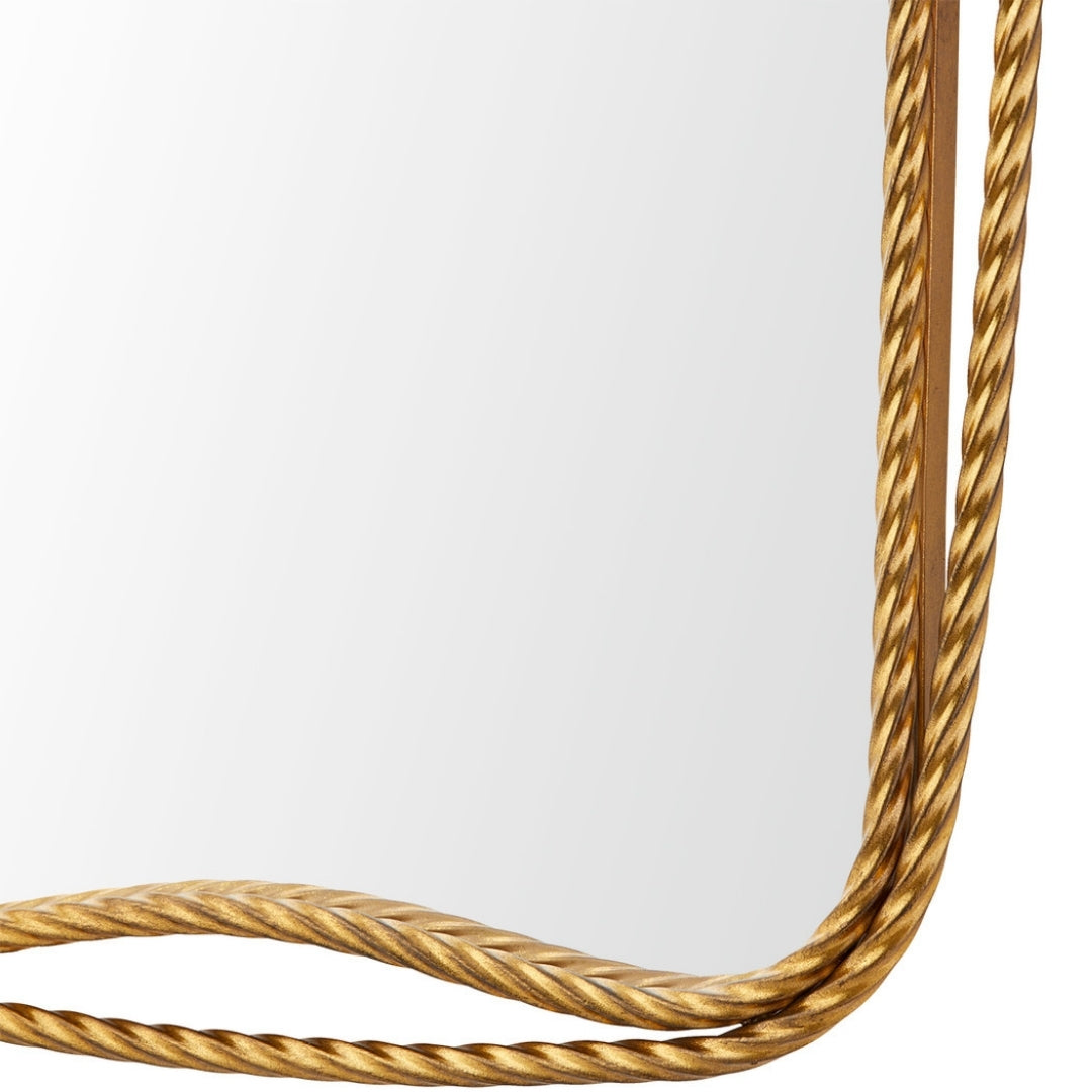 The Gordian Mirror is a romantic reinterpretation of mid-century Italian design, blending charm, sophistication, and subtle glamour. Shaped like an elegant, jewelry-inspired pendant, the frame is wrapped in twisted gold-leaf rope, lending the piece a rich texture and delicate sheen. With its soft curves and decorative finish, the Gordian Mirror adds a touch of whimsy and refinement to walls—perfect as a standalone statement or layered into a collected interior.