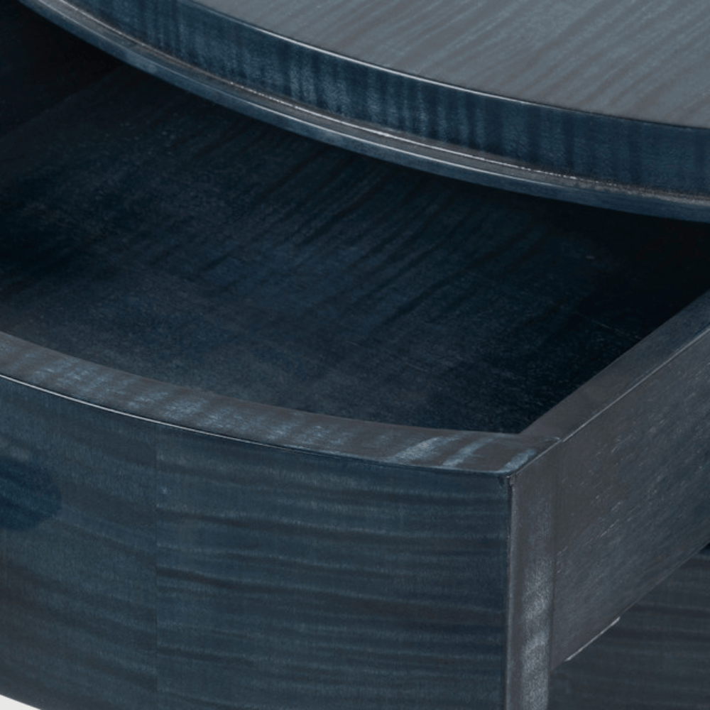 The Natalie Side Table pairs graceful curves and thoughtful storage. Its oval silhouette features two drawers and a lower shelf, ideal for stowing away essentials, with ample surface area for display. Crafted in striking anigre wood, the piece showcases a natural fiddleback grain that shimmers subtly in the light. Burnished bronze drawer pulls and sleek, tapered legs add polish and poise, giving this compact table a sense of lightness and quiet sophistication.