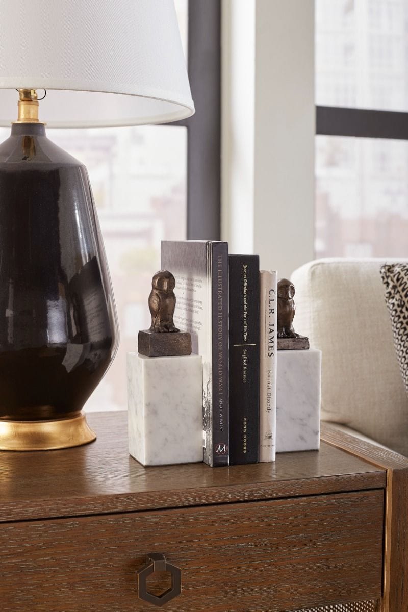 The Owl Statue, available in bronze and gold leaf, features a small owl on a white marble base. As a symbol of wisdom, it serves as an ode to intelligence and learning, making it a thoughtful addition to any home or office. Its simple, meaningful design adds both charm and whimsy to your decor.
