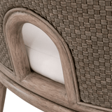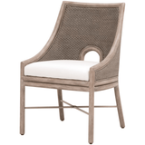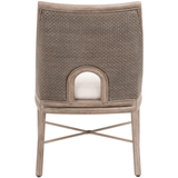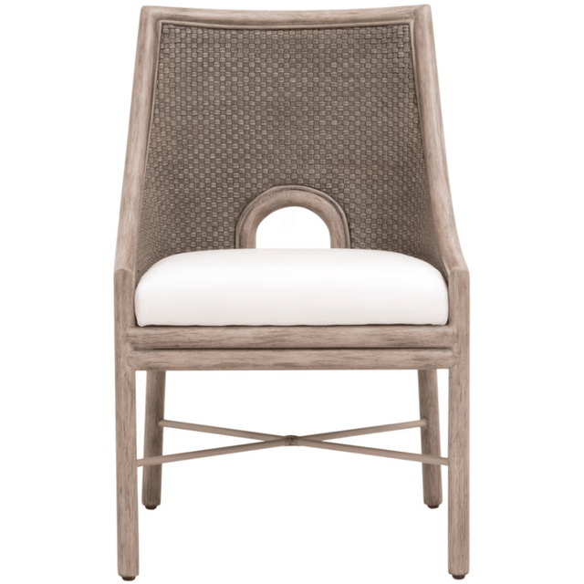 The Adamo Dining Chair by Essentials For Living brings a refined touch to any dining setting with its transitional style and thoughtful design. It features a solid mahogany frame in French Gray complemented by a basketweave Cabana Loom in French Gray on the seat back and sides. The fixed seat cushion, upholstered in high-performance LiveSmart Peyton-Pearl fabric, combines polyester and nylon for both durability and comfort. The stretcher base design provides added support and a subtle elegance, making this chair as sturdy as it is stylish.