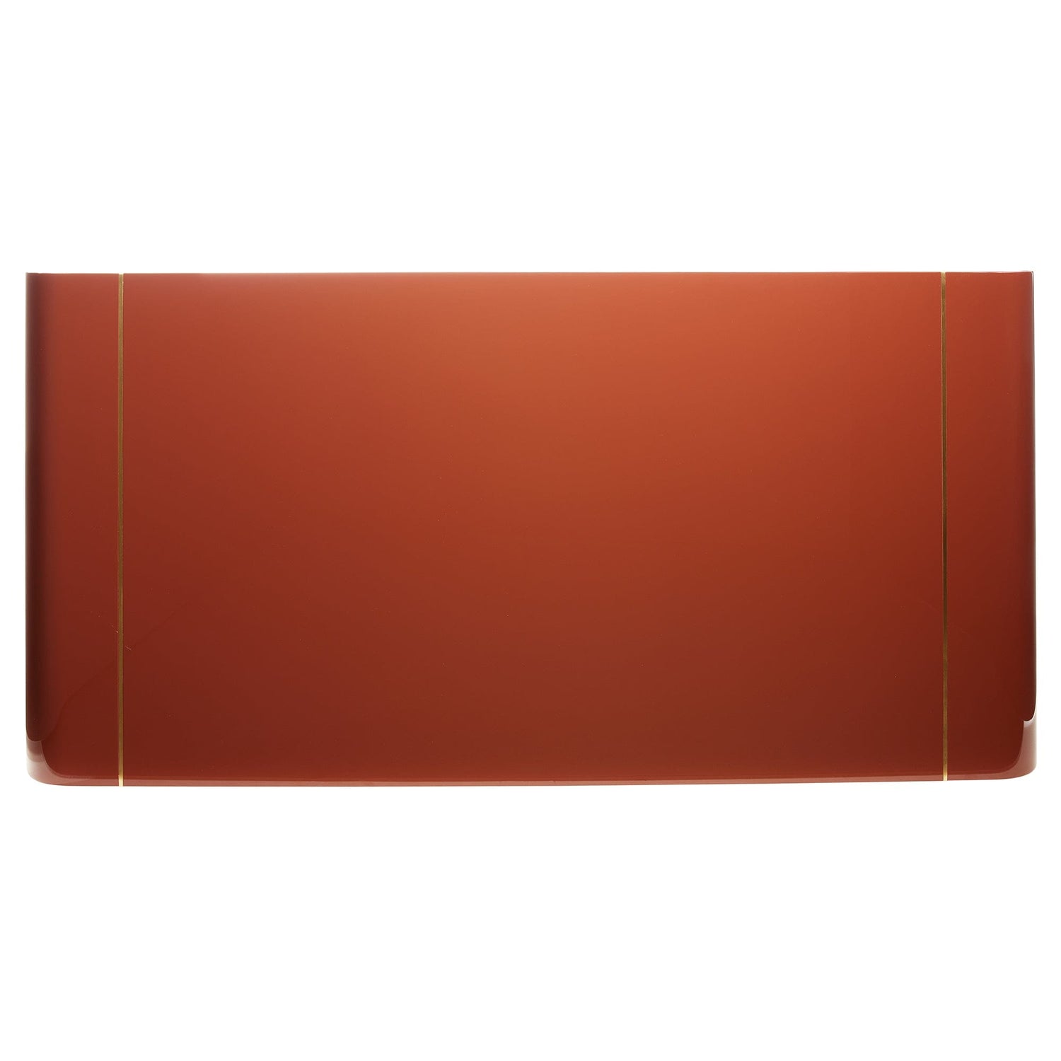 A modern take on a traditional scroll table, the Turnley cocktail table provides a sleek profile. The rich and vibrant paprika lacquer finish brings a luxe shine to the surface, while thin antique brass inlay stretches edge to edge. The softened angular shape of the legs breaks away from the traditional scroll leg, bringing forth a modern interpretation.