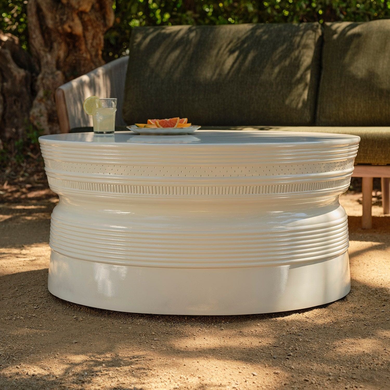 Bring tranquility to any outdoor retreat with the hourglass-shaped Astoria coffee table. Elevated with intriguing details along the surface, Astoria boasts a faux ceramic construction, making it both easy to transport and style.