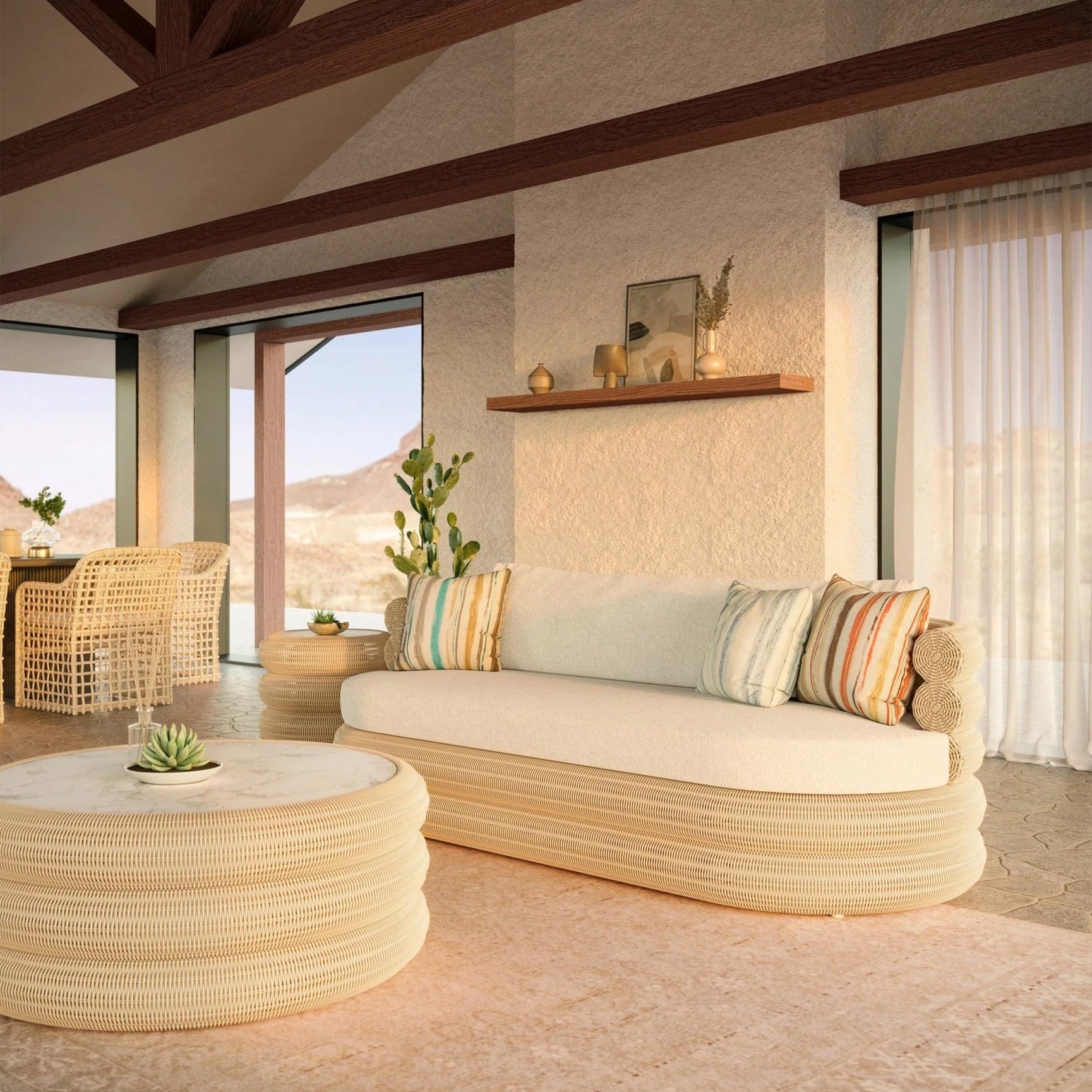 The Texoma collection uses a mix of neutral tones, intricate textures, and clean lines to create its classically glamorous and modern silhouette. Designed for every season and any environment with luxurious all-weather wicker and chenille performance fabric. Carefully balancing old and new, Texoma is swoon worthy, perfectly proportioned, and impeccably crafted to go anywhere, outside or in.