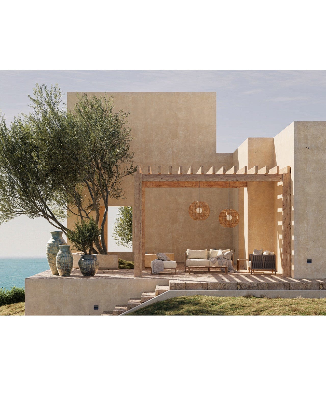 The Barbary Fluted Outdoor Pendant is made of all-weather wicker that can easily withstand the elements, as will the rod from which it hangs in a black powder-coated finish. An artisanal aspect of this tan pendant is the intricacy of the uniform weave hand-tied to create the starfruit shape of its profile. The milk-glass globe on the one-light pendant will illuminate the shade to reflect textural shadows on nearby surfaces. The Barbary is wet location-tested so it is ideal for lighting patios and porches.