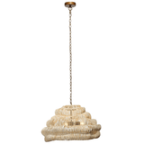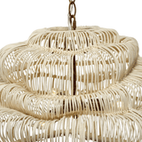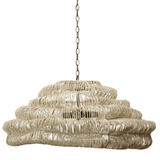 Our Bettina chandelier features layer upon rippling layer of rattan, arranged in billowing strips to allow light to peak through and cast artful shadows around the room. Natural variation to be expected.