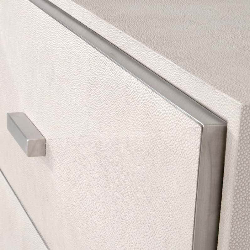 Materials: Acacia Veneer or Faux Shagreen Resin, Solid Rubberwood, MDF, Plywood, Steel PO