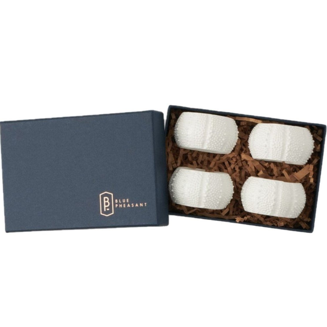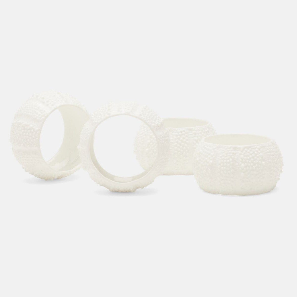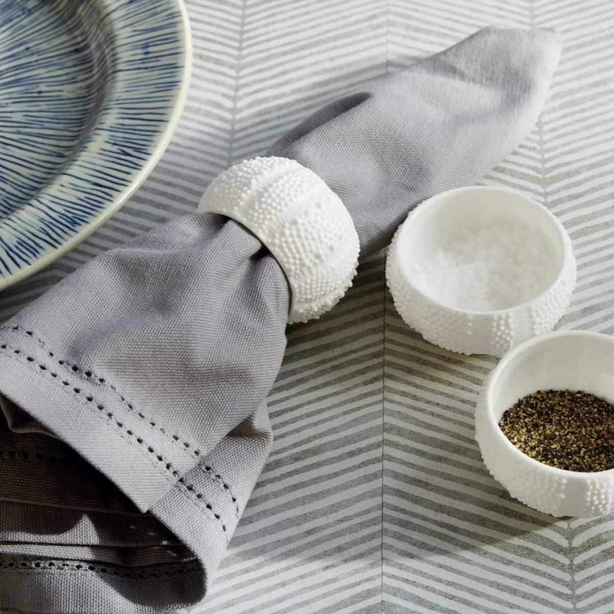 These white porcelain napkin rings are inspired by the sea urchin’s delicate textured pattern and curved form.