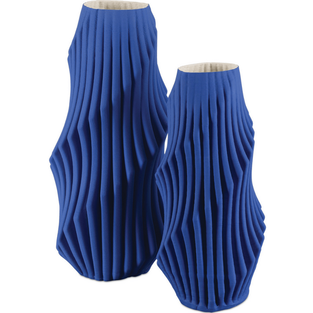 The Blue Pleat Vase is attractive in a lovely hue of cobalt blue. The deep furrows that wrinkle around the form to create waves of movement are achieved with such a uniformity they can only be machine-made. The most surprising thing about this handsome vessel is that it is made of 3D-printed porcelain, an ancient material you might not expect to be so amenable to such a contemporary process.