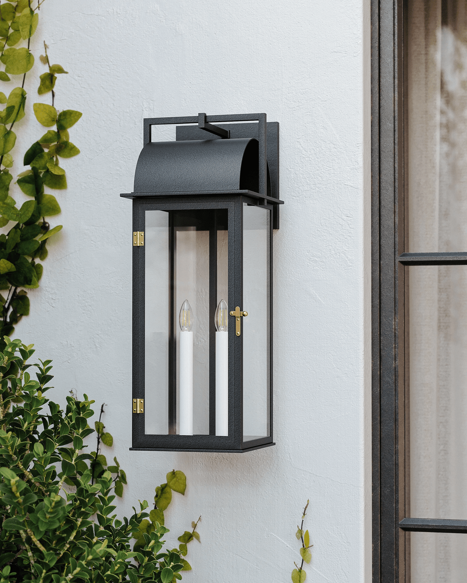 A modern reimagining of early American gas lanterns, Bohen features a sleek profile defined by clean lines and heritage details. Finished in Forged Iron with Patina Brass hardware, it has a rustic, yet refined presence that is particularly suited to traditional homes. Bohen illuminates large entrances, front doors, and driveways with its timeless design.