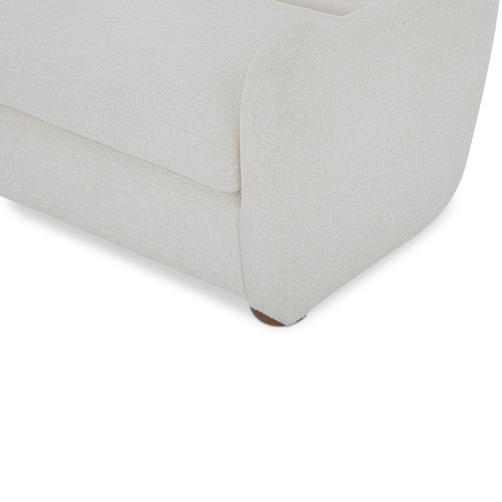 The Bria sofa's gently sloping arms and rubberwood feet, finished in rich, warm brown inspire a vintage charm, reimagined for contemporary living. Crafted with a removable high-density foam seat cushion and upholstered textured, flecked fabric, it offers supreme comfort.
