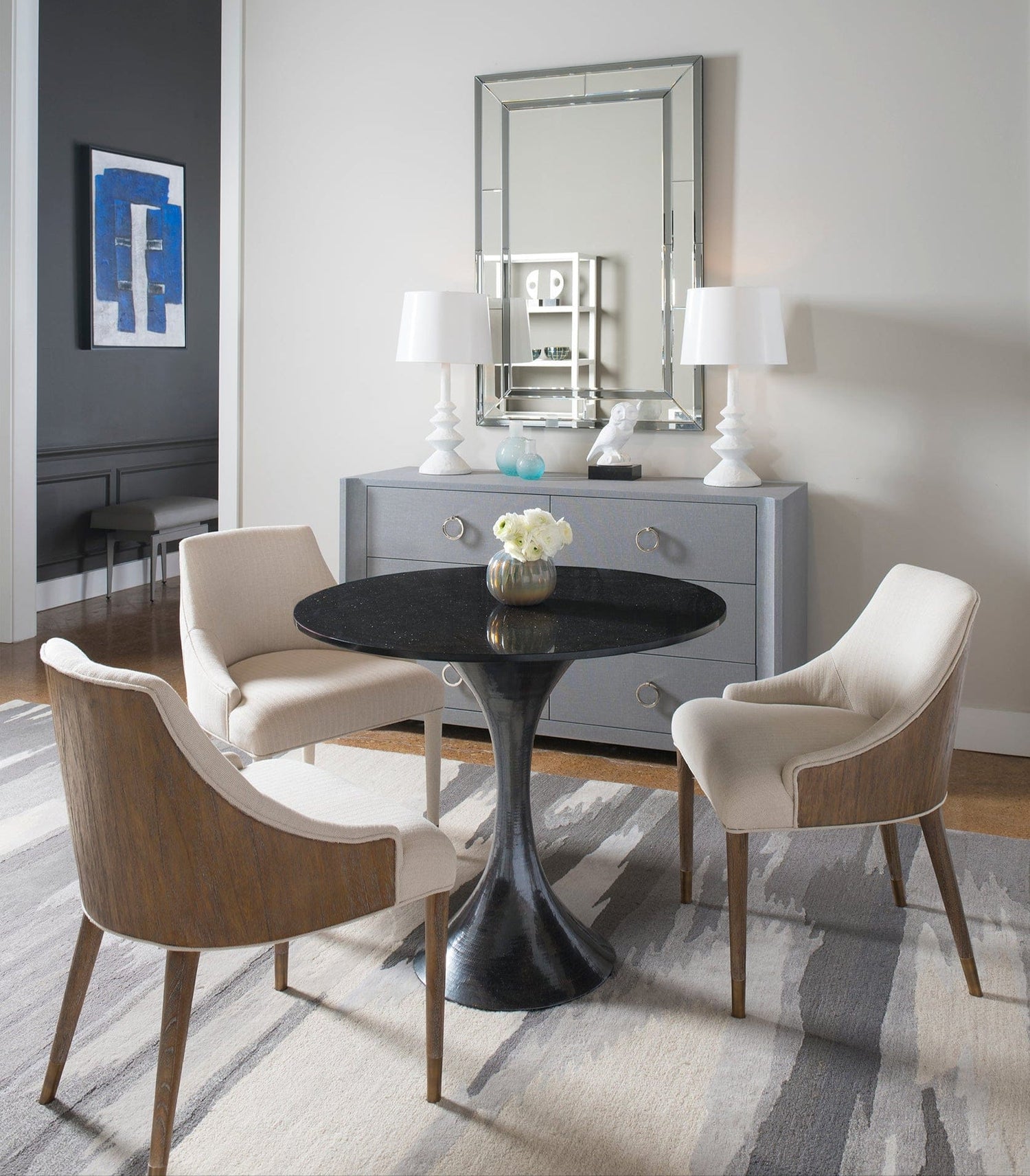 Villa & House's designs are celebrated for their sophisticated silhouettes and luxurious materials. Let’s just say the Orion Armchair serves as the perfect example. Combining elements of the soft and solid, the plush seat is covered in natural linen in a subtle herringbone pattern and backed by a structured framework of beautifully grained driftwood. The gentle curves and cloudlike cushioning are met with the sleekness of its four wooden legs, delicately tapered and capped in bronze. The angled positioning of the two back legs recall mid-century modern design, giving the piece a retro aesthetic that’s timelessly chic. The Orion makes for a beautiful accent chair in a sitting room or study, or it can be used as a dining set that elevates each meal with a sense of high-end comfort.