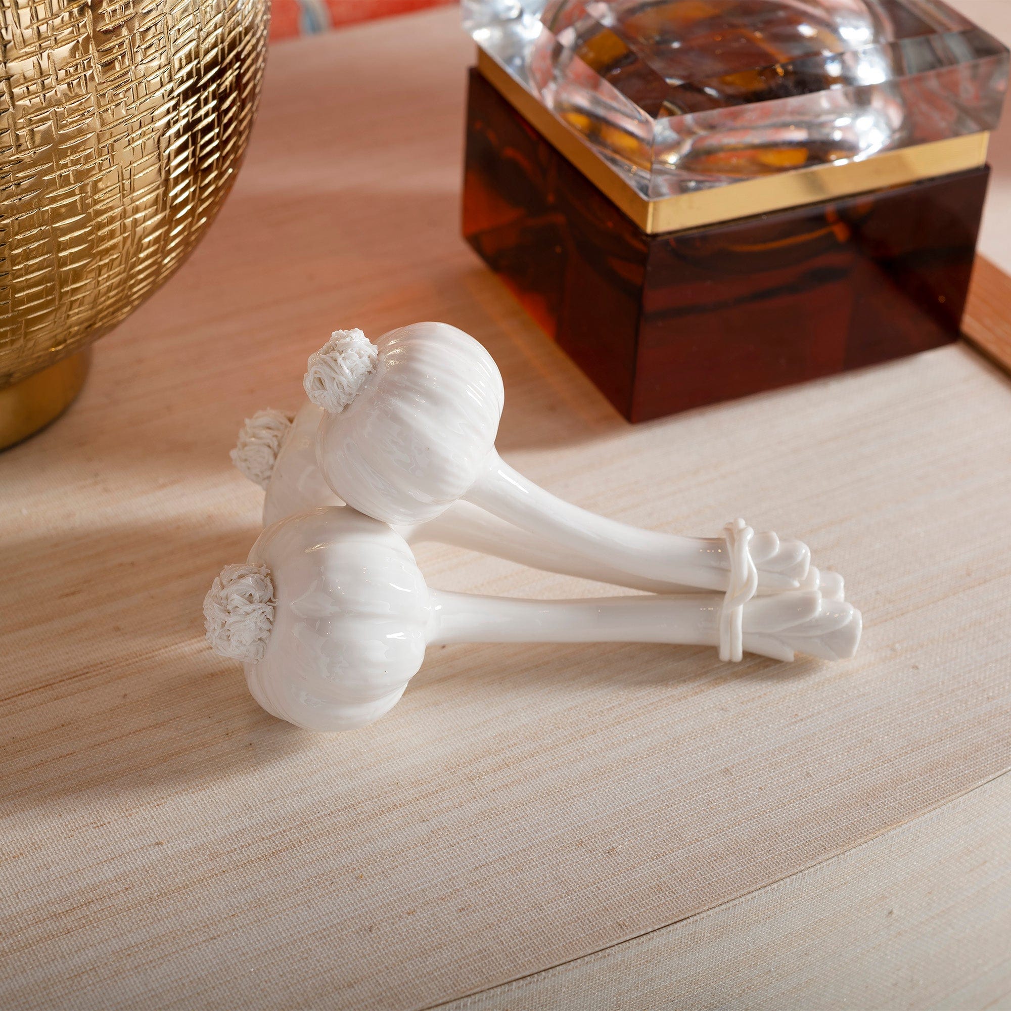 Giving new meaning to the phrase “farm-to-table,” our Vegetable Garden Set consists of produce you’ll definitely want to show off on your table and beyond. The tongue-in-cheek collection playfully depicts a range of farmstand vegetables in precious Blanc de Chine porcelain, turning everyday food items into stunning works of art. Villa & House’s artisans have approached these pieces with a sense of humor and an eye for detail. From the delicately tangled roots of the garlic bulbs to the crisply undulating leaves of the cauliflower, the realism is astounding. Inspired by a similar set spotted at an antique shop in Paris, these porcelain vegetables elevate any kitchen or dining area with a sense of French farmhouse charm. Display together as an island centerpiece or place them in different areas of a countertop as a fun decorative motif.