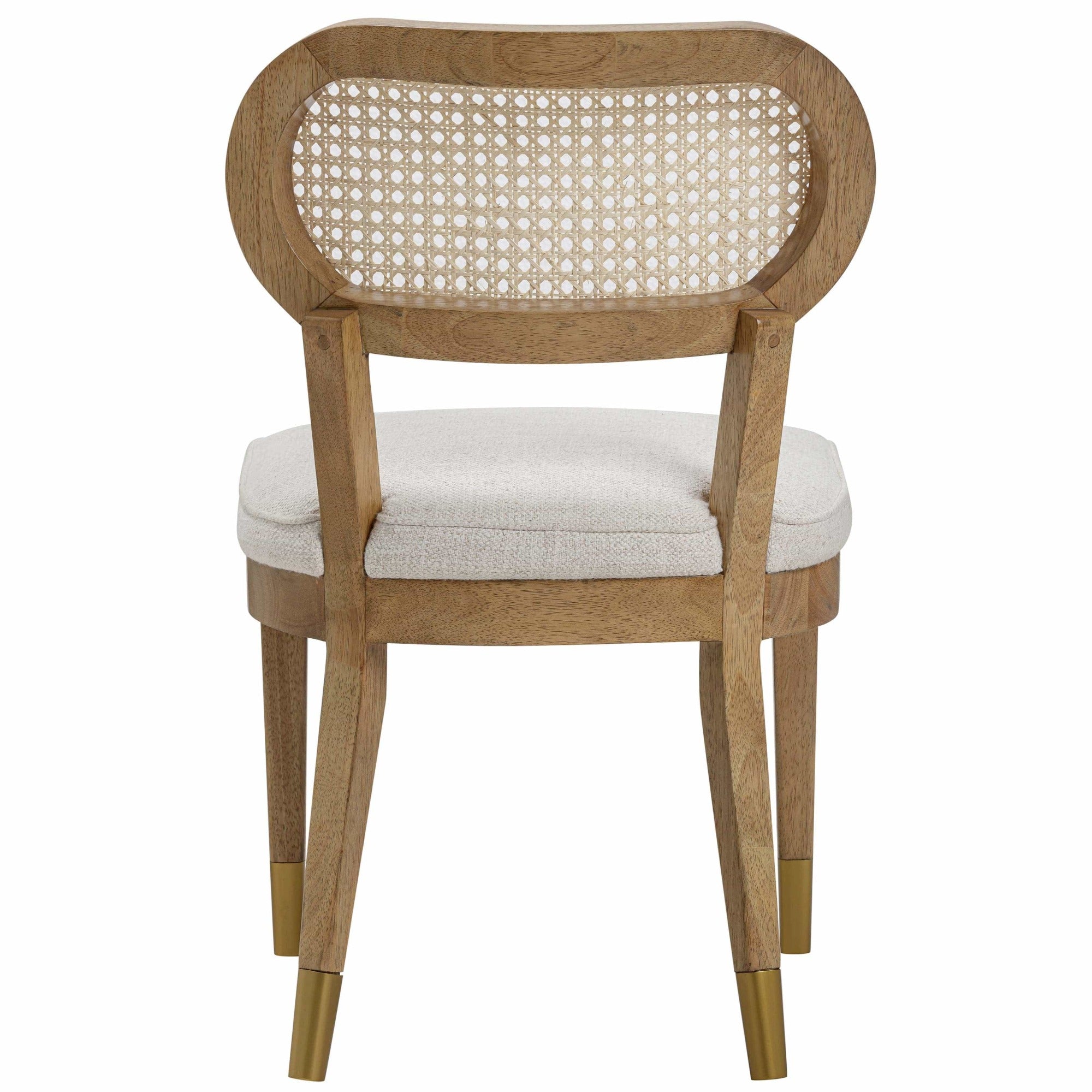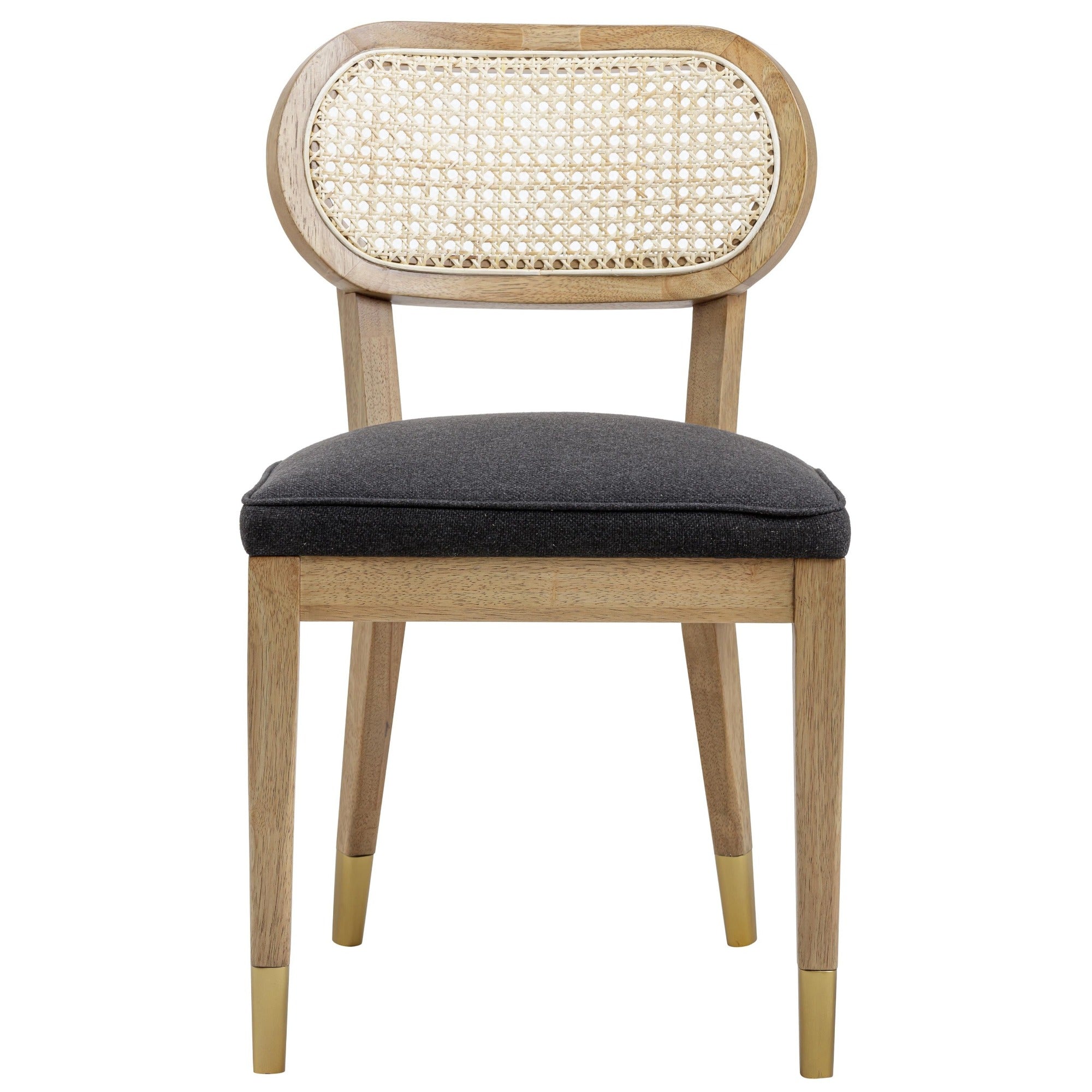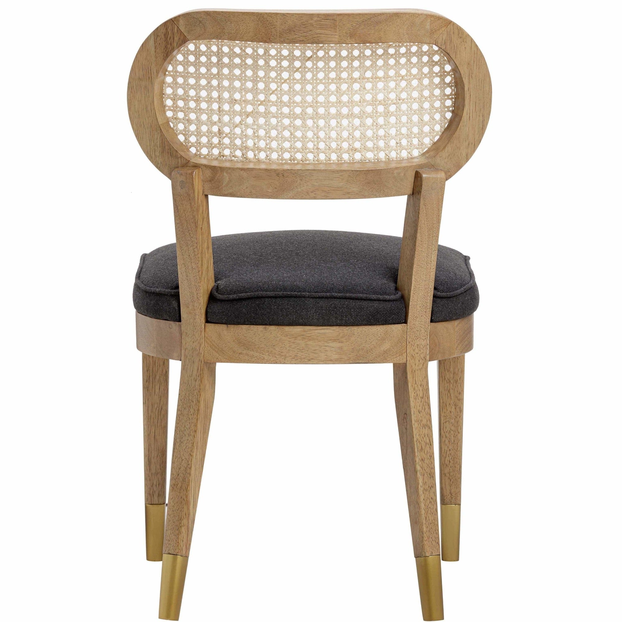 The Leah Dining Chair is back with a bold twist. Crafted in sleek black wood and paired with a performance cream upholstered seat, it brings modern contrast to timeless mid-century lines. With its sculpted proportions, stunning cane back, and brass-capped legs, Leah blends comfort and sophistication into a piece that feels fresh, refined, and forever stylish.