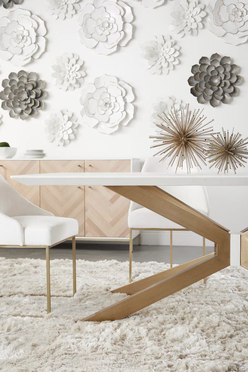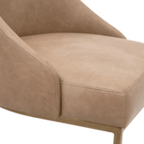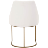 Upgrade your dining area with the Parissa Dining Chair by Essentials For Living. This chair represents a harmonious fusion of modern and classic designs. The expansive curved back and cantilever chair base impart a unique design, while the embellished metal base elevates the overall visual allure. This chair offers a capacious and comfortable seating solution. This chair will be sure to enhance your dining experience with its warm and neutral colors, transitional style, and plush design.