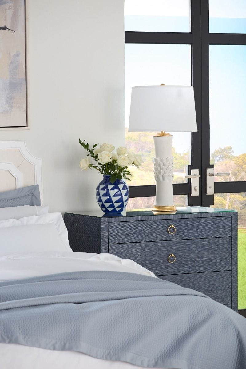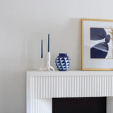 The Columbina Vase captures the essence of Mid-Century Modern design with its bold geometric patterns and vibrant cobalt blue and white contrast. Its classic bouquet shape combines simplicity with a touch of artistic flair, featuring interlocking triangular shapes that reflect the era’s abstract style. Perfect for making a statement, this vase brings a dynamic and modern touch to any space, blending art and functionality effortlessly.