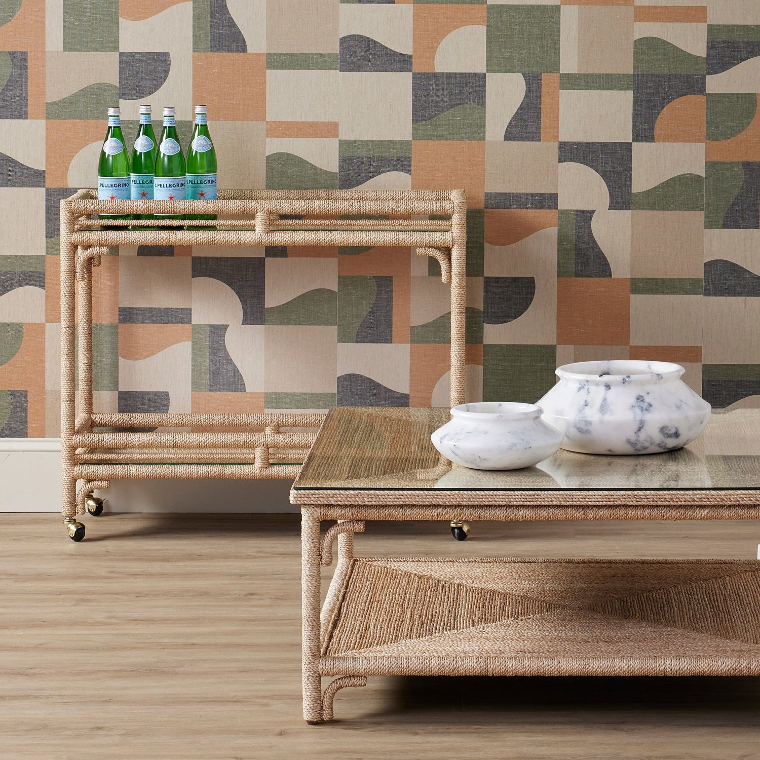 With the earthy feel of rattan and wicker, the Olisa Cocktail Table is covered in braided abaca rope to bring a natural elegance to a room. The dexterity required to wrap a piece of furniture so skillfully makes this tan coffee table special. The glass top will protect the absorbent material from any smudges, drips, or splashes that inadvertently come with everyday life. The bottom shelf is perfect for stashing newspapers, books, or hobby-related materials.