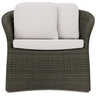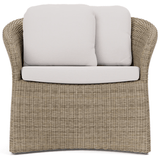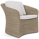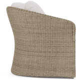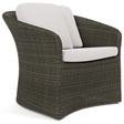 Our Deborah is made from weathered faux rattan with smooth and alluring curves and a swivel. Cushion comes upholstered in our base fabric, Alsek White, or can be upholstered with one of our luxe upholstery fabrics.