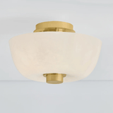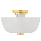 An organic beauty inspired by nature, the bubble-like silhouette of Dove glows from within. This sophisticated flush mount features an outer layer of unetched cloud glass over an inner cylinder of opal shiny glass. Accented with Aged Brass metalwork, Dove adds an artful quality to living and dining spaces.